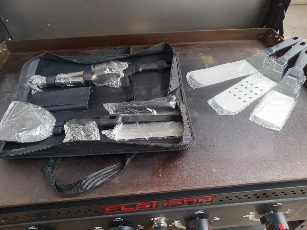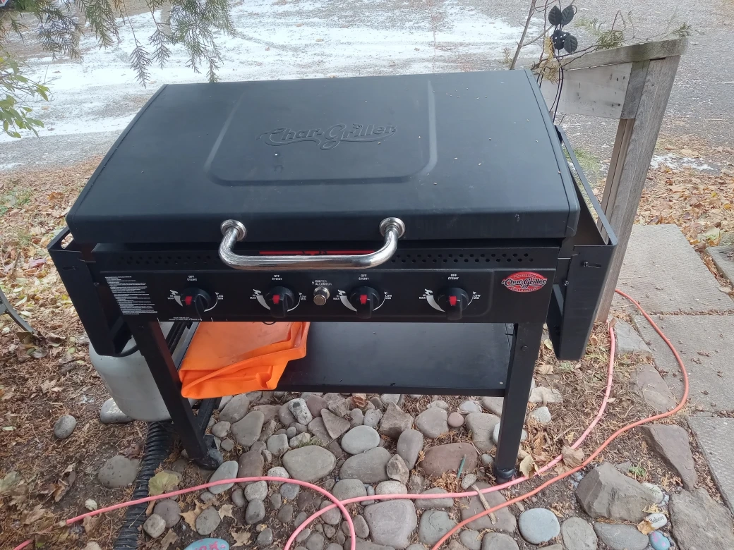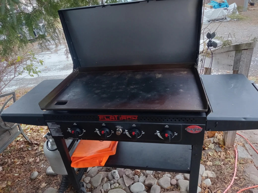 I'm selling a Char-broiler 36" 4 burner flat top griddle with lid. Used it once. Comes with silicone flat top cover 20lbs propane tank with guage to show how much propane isin tank and a brand new Blackstone griddle tool kit! It comes with all the essential tools you need for your griddle cooking adventures, neatly packed in a convenient carrying case. Perfect for keeping your griddle clean. Its on 4 caster wheels two swivel and 2 strait with wheel locks also Legs can be folded in for storage or easy transport if need be