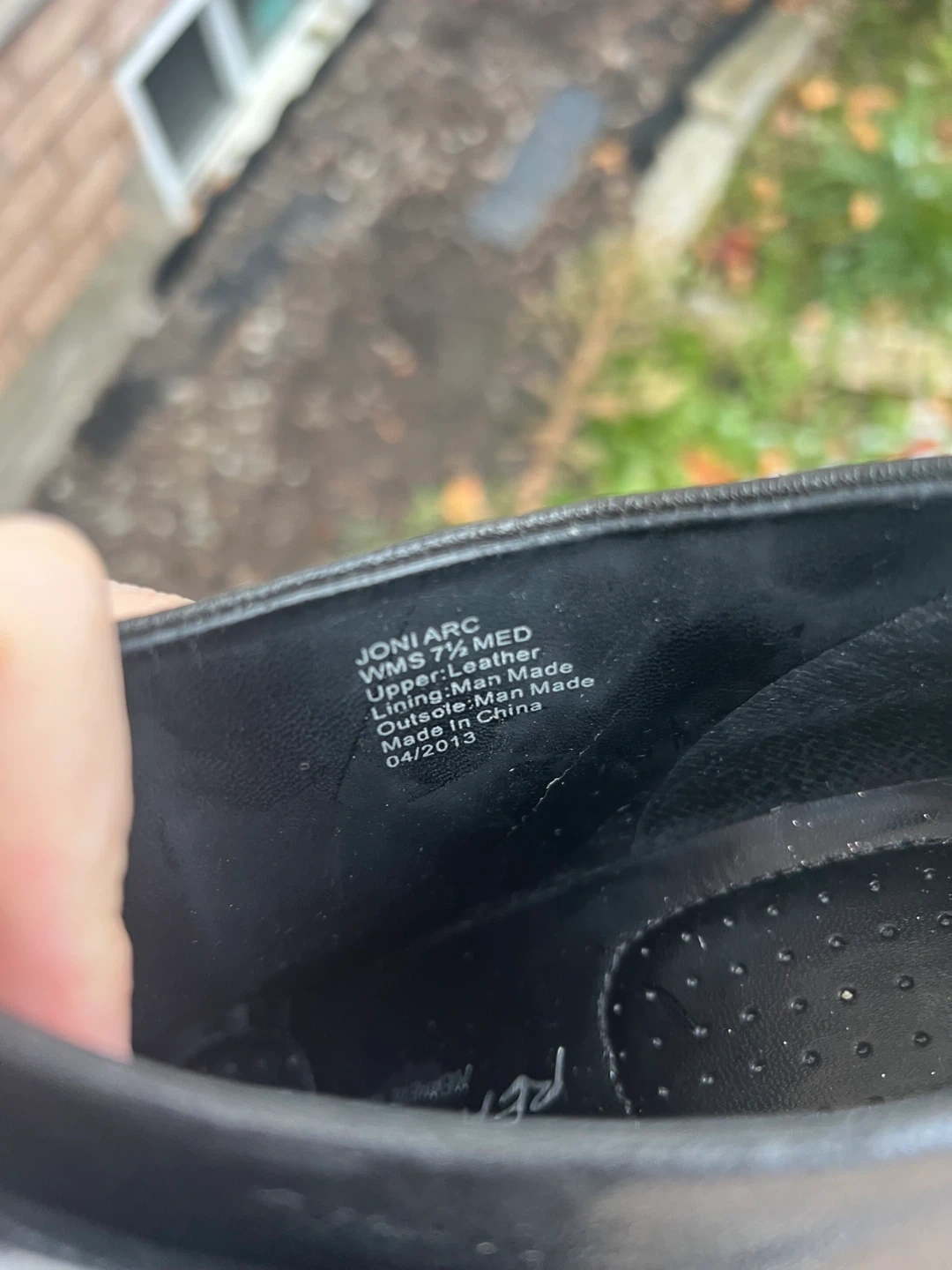 Selling a pair of booties in black leather! These are a women's size 7.5 MED. The upper is made of leather, the lining is man-made, and the outsole is also man-made