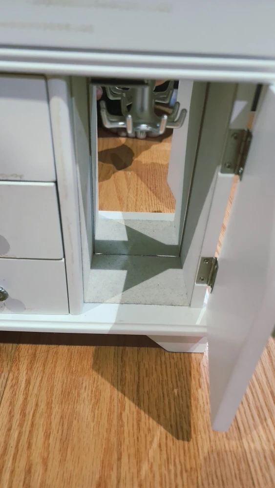 white jewelry box! It has a little ballerina inside and a mirror on the inside of the lid. It has some drawers and a side cabinet for storing your jewelry