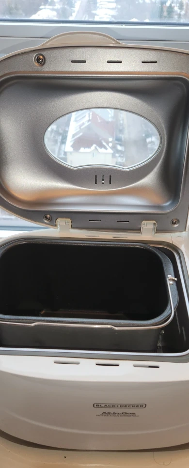 Selling a Black+Decker All-in-One automatic breadmaker. It's in great shape and ready to make some delicious bread! It has various settings for different types of bread, including basic, rapid-bake, whole grain, and sweet bread. It also has options for dough and preserves.