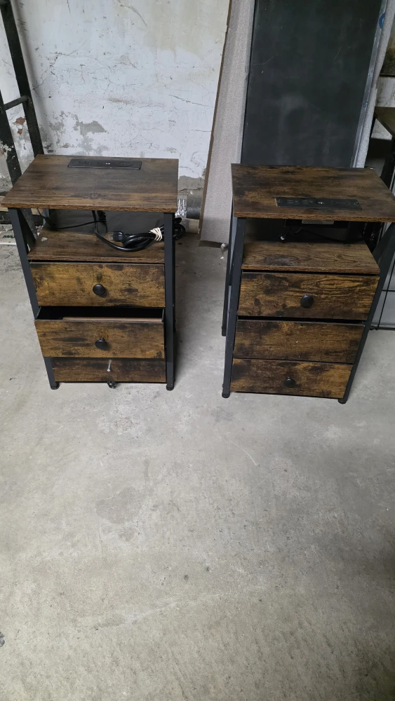 Selling a set of two nightstands in good condition. They feature a built-in charging station on top, perfect for keeping your devices powered up overnight. Each nightstand has drawers for storage, making them both functional and stylish for your bedroom or living room