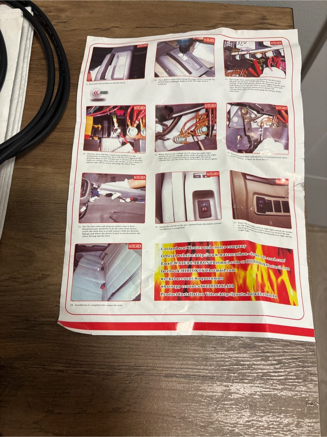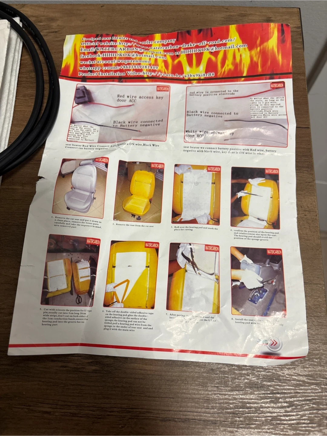 Selling a WATERCARBON car seat heater pad kit. It comes with the heating pad and wiring. Please refer to the installation instructions in the photos.