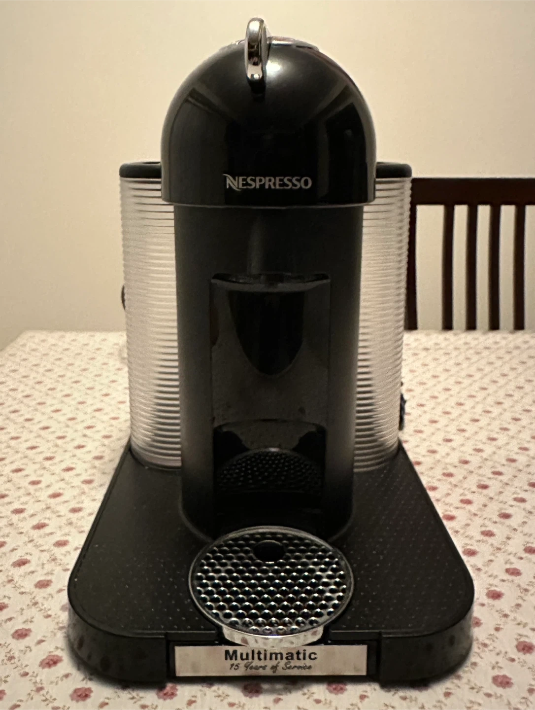 Selling a Nespresso Vertuo coffee machine in great condition! It comes with the box. Enjoy a variety of coffee sizes, from Alto to Gran Lungo, with just the touch of a button. Perfect for your daily caffeine fix!