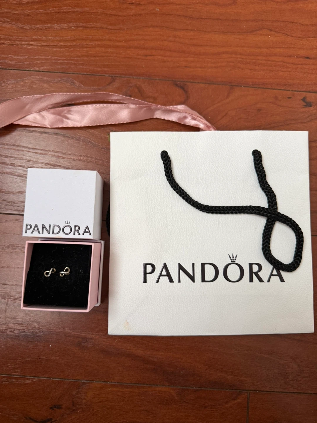 Selling a pair of Pandora infinity stud earrings. They come with the original box and bag!