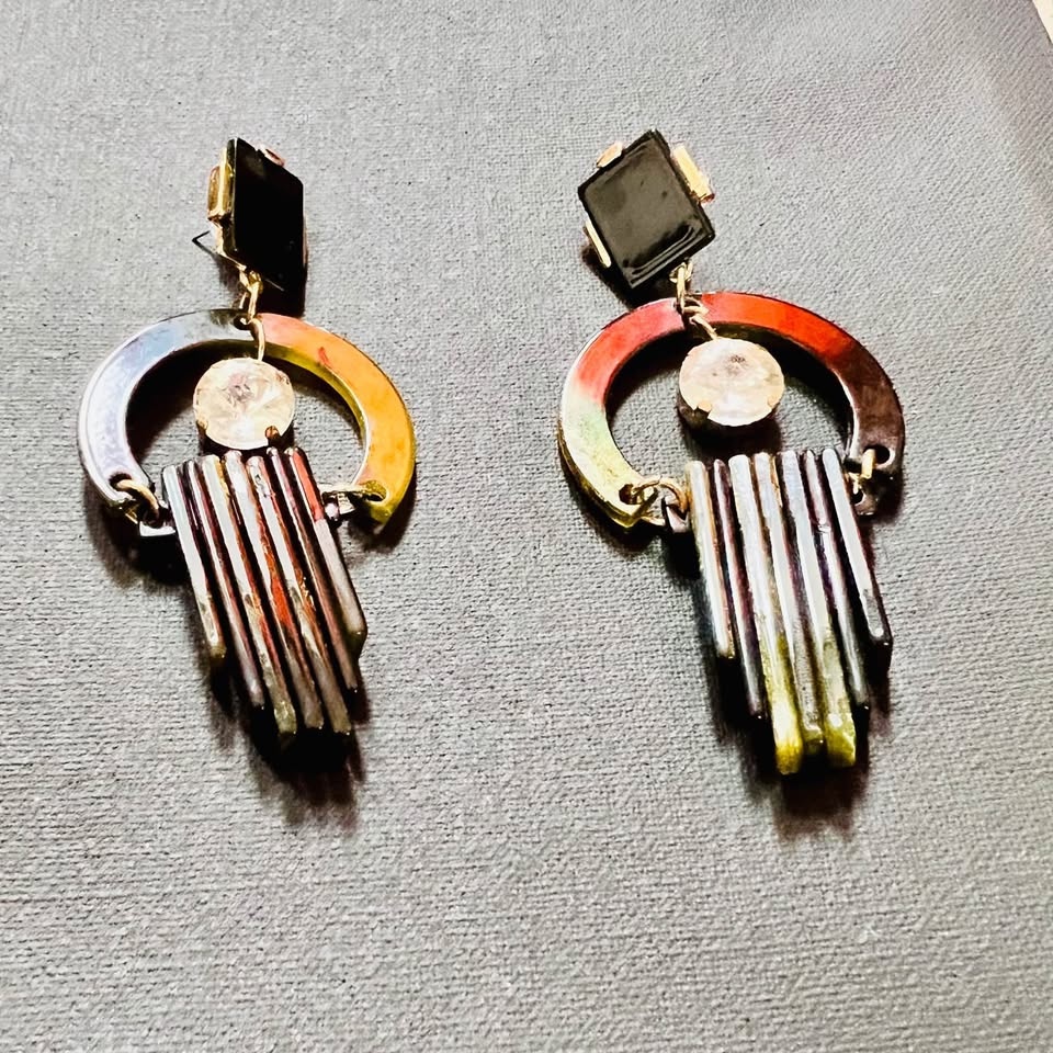 Art Deco style earrings - super cool & 1 of a kind! 🦄