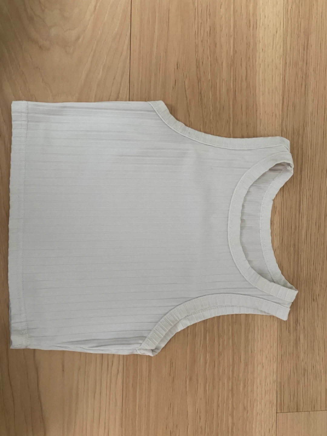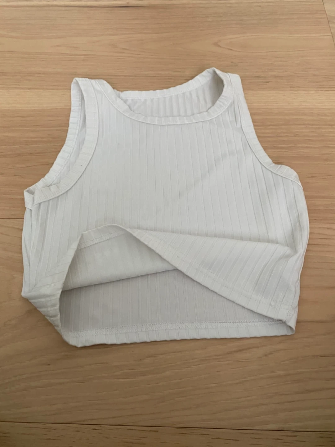 Selling a white ribbed tank top. It's in great condition and perfect for layering or wearing on its own. The material is soft and comfortable.