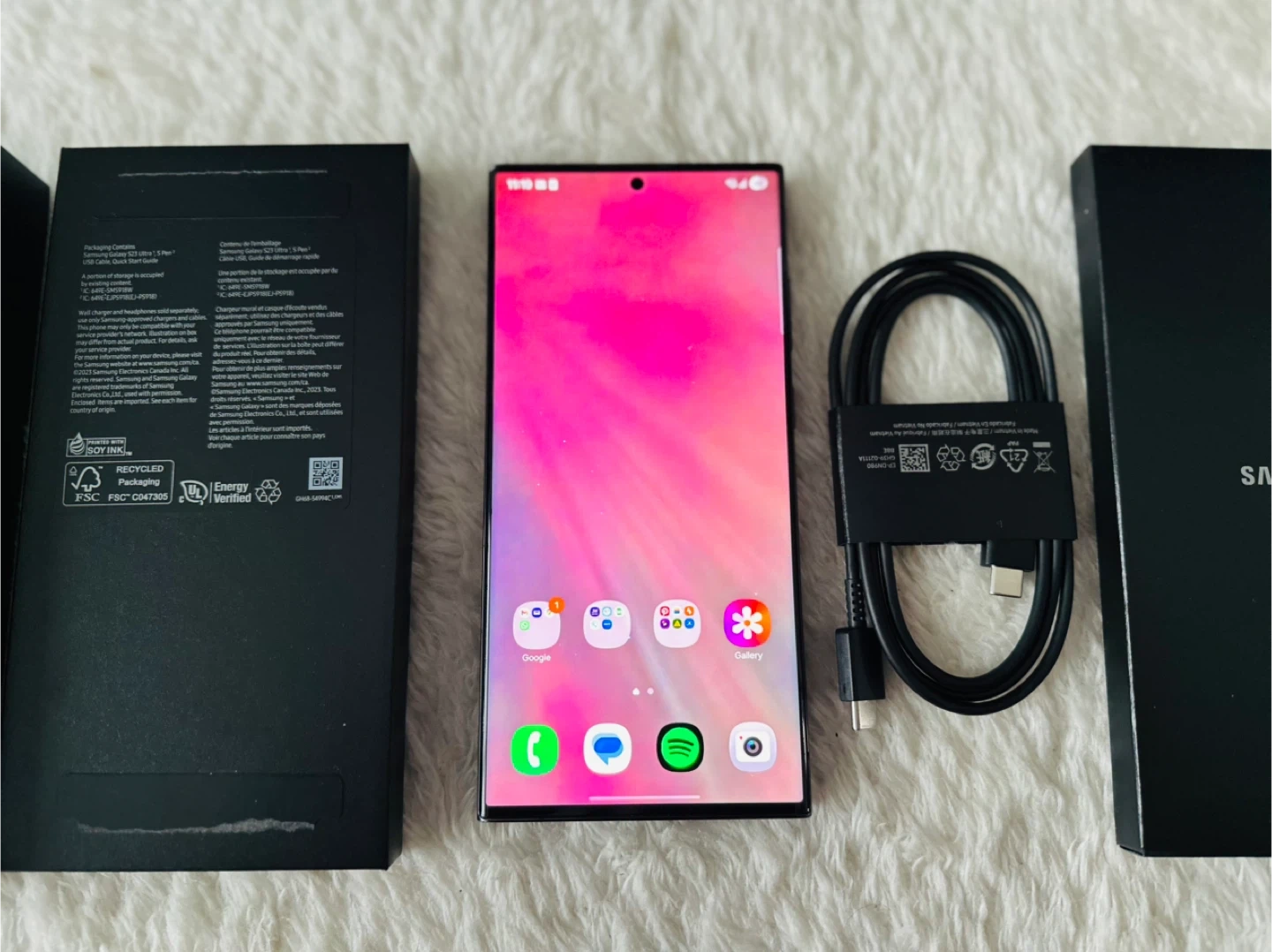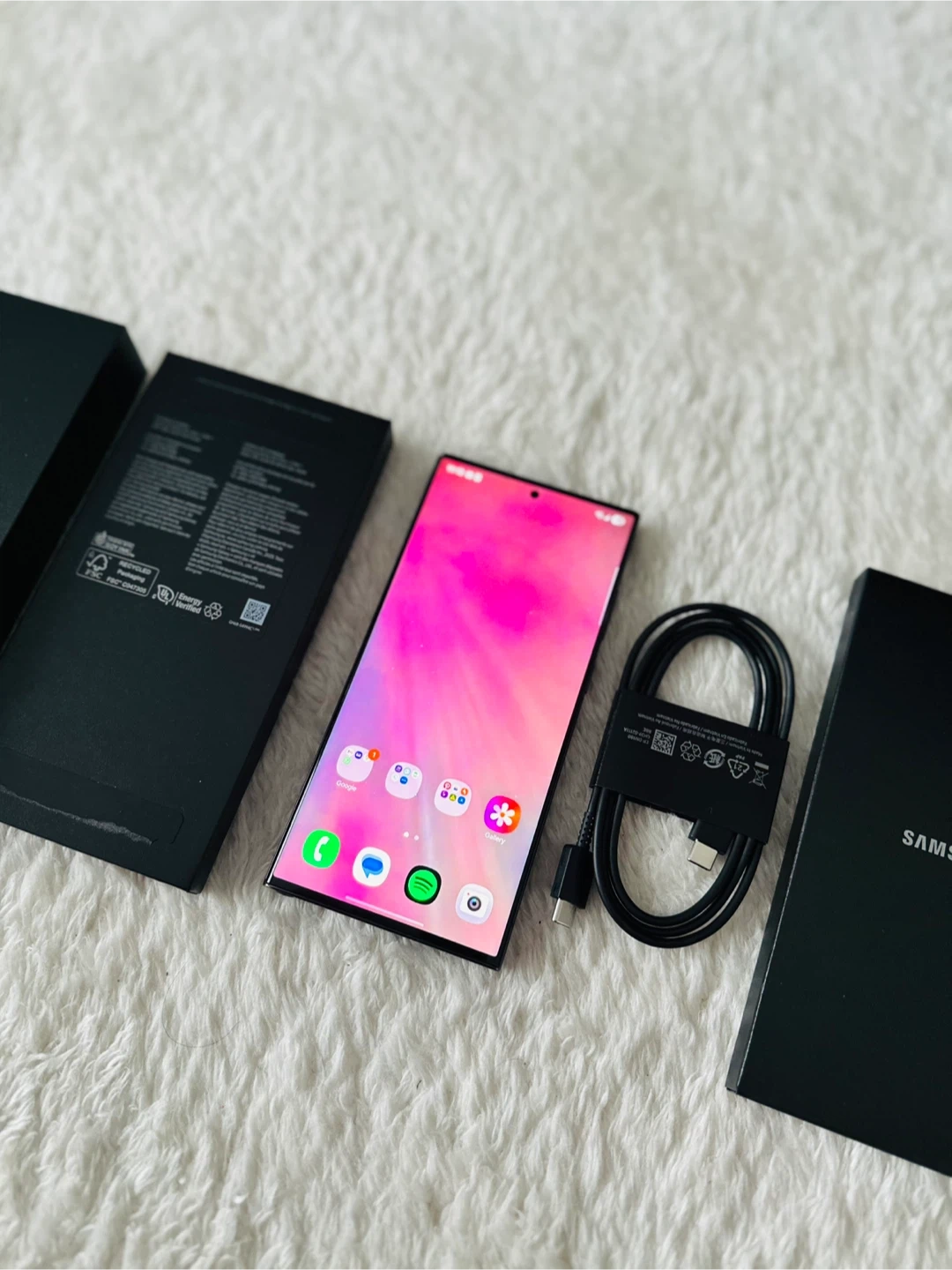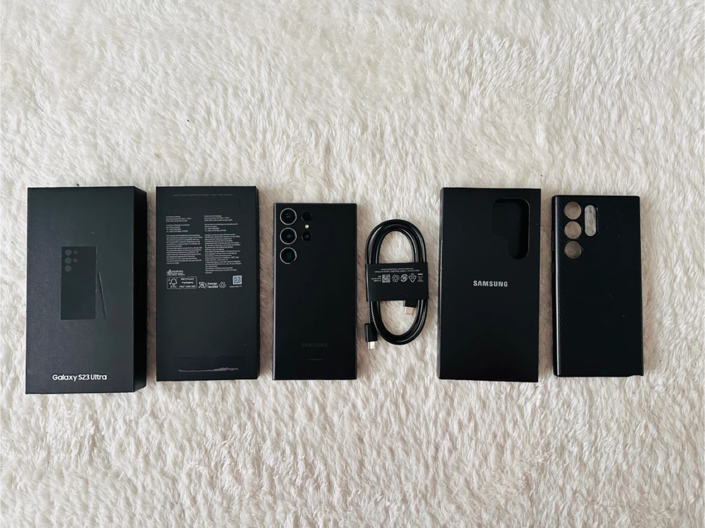 Selling a like-new Samsung Galaxy S23 Ultra in black! It comes with the original box and all included components, like the charging cable. There's also a Samsung case included for extra protection!