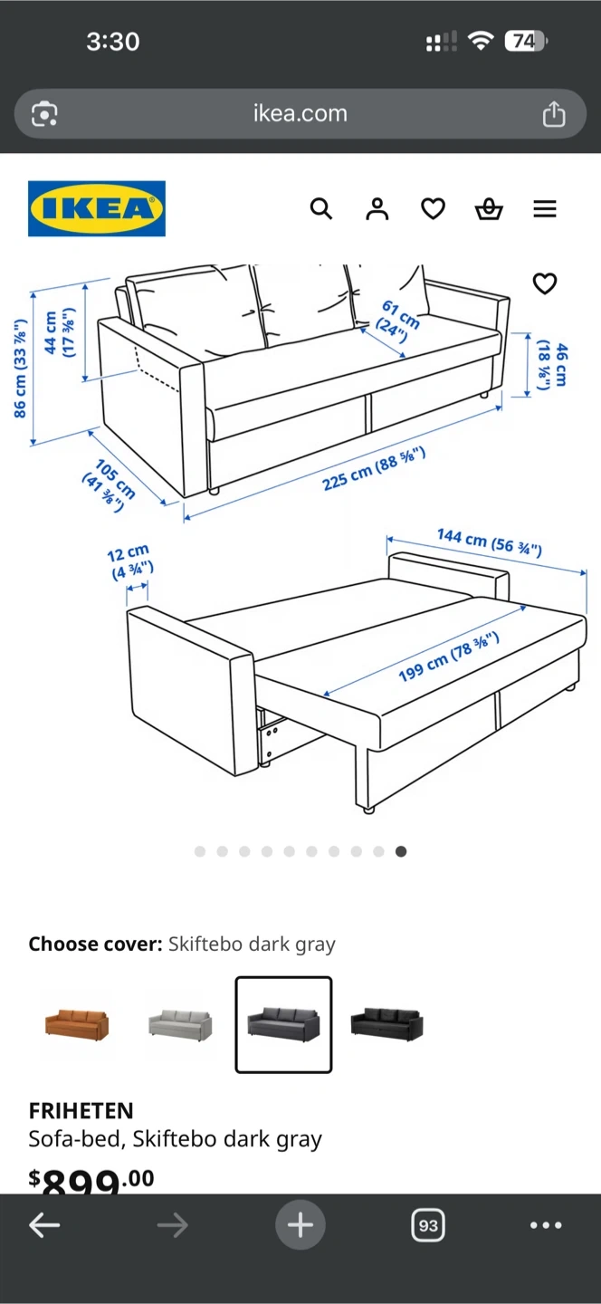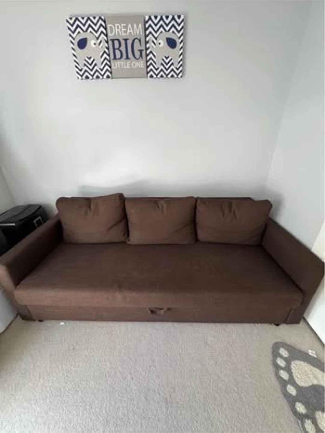 Selling a brown IKEA FRIHETEN sofa-bed. It's in great shape and ready for a new home! The dimensions are: