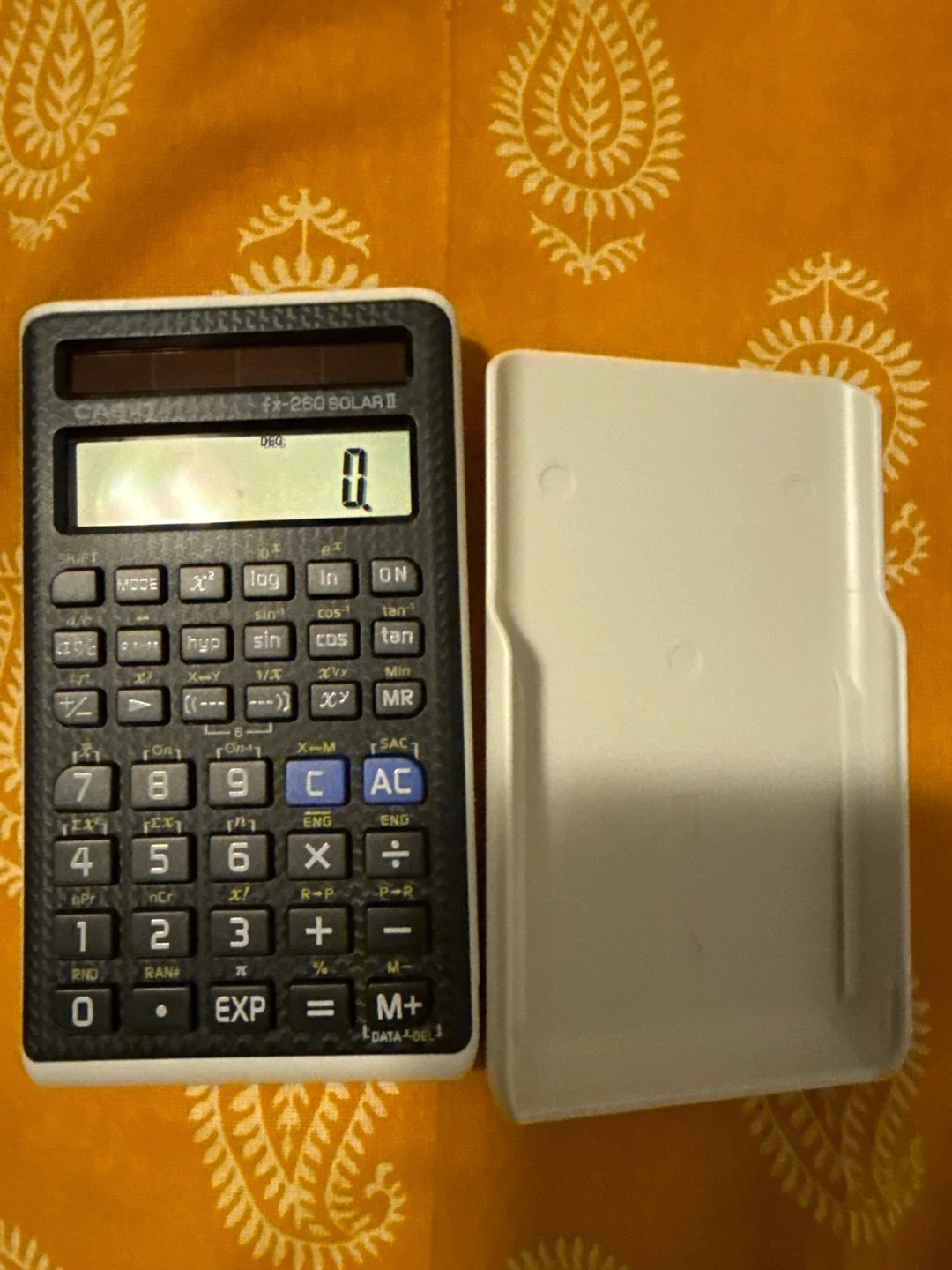Selling a Casio fx-260 Solar II scientific calculator in excellent condition! It comes with its slide-on hard case. It's a solar-powered calculator with a 10+2 digit display, fraction calculations, and trigonometric functions. It also has 1-variable statistics, 1 independent memory, and permutation/combination functions. Expiry Date: 2025 August 08
