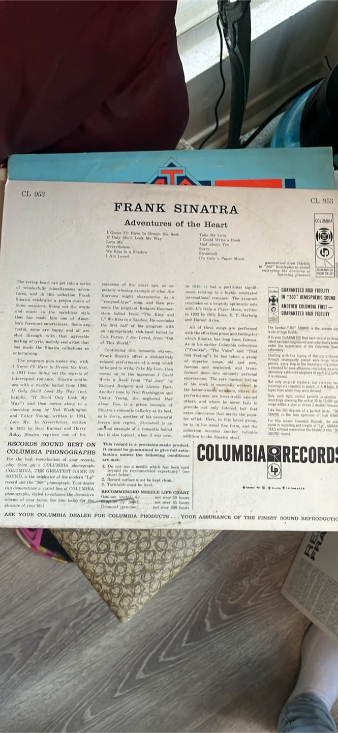 Buy & SellFrank Sinatra - Adventures of the Heart Vinyl RecordFrank Sinatra - Adventures of the Heart Vinyl Record$15Selling a Frank Sinatra vinyl record, "Adventures of the Heart" on Columbia Records. A great addition for any vinyl collector or Frank Sinatra fan!WHERE TO MEET5 points mallView MapSELLERverifiedSusieNorth Oshawa711 review0 chats·0 favorites·2 views