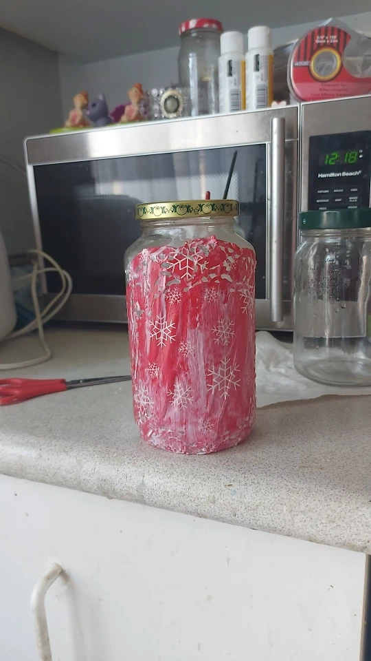 I'm selling some handmade holiday decor. There is a pink elephant plush toy, some floral patterned plates and a jar with snowflake decorations. These items are great for decorating your home for the holidays!