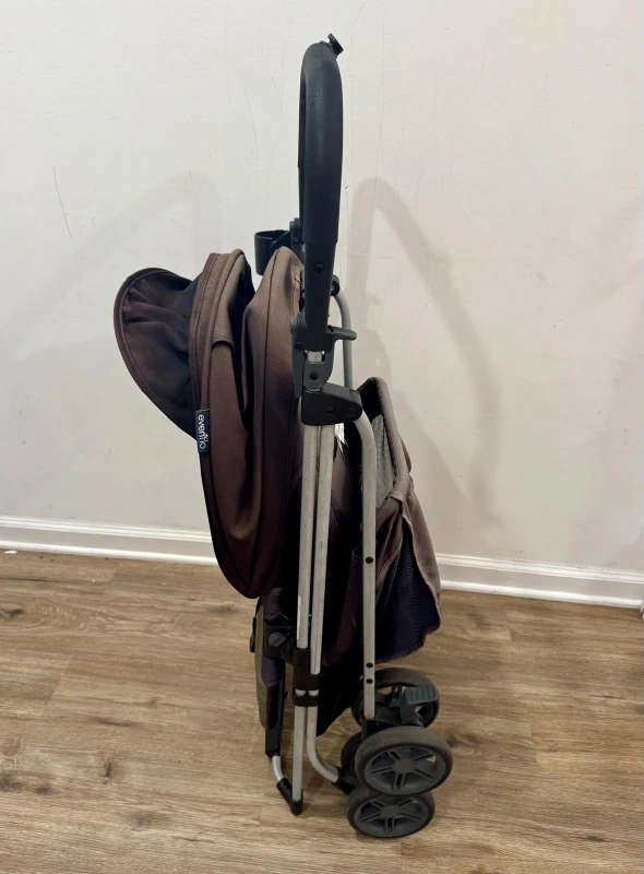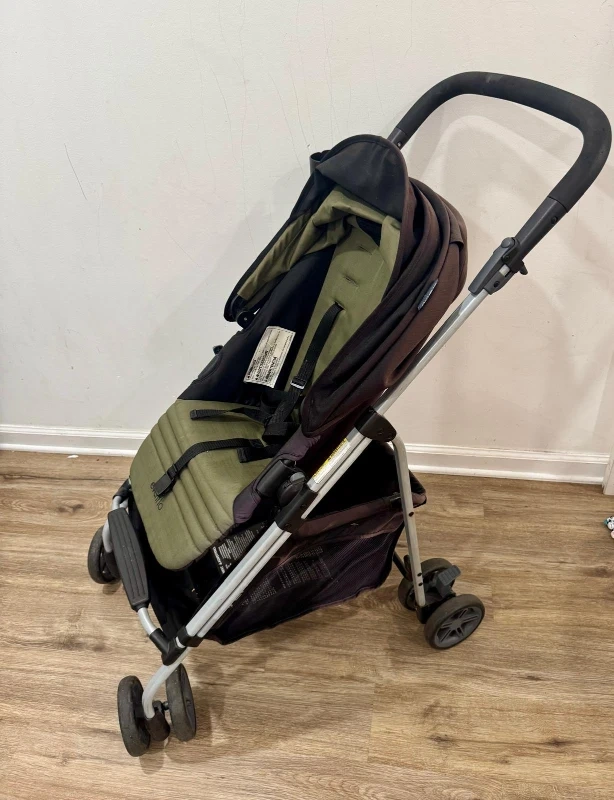 Selling an Evenflo travel stroller. It's in good condition and ready for new adventures! It features a versatile design that can be pushed or pulled. The seat is an olive green color.