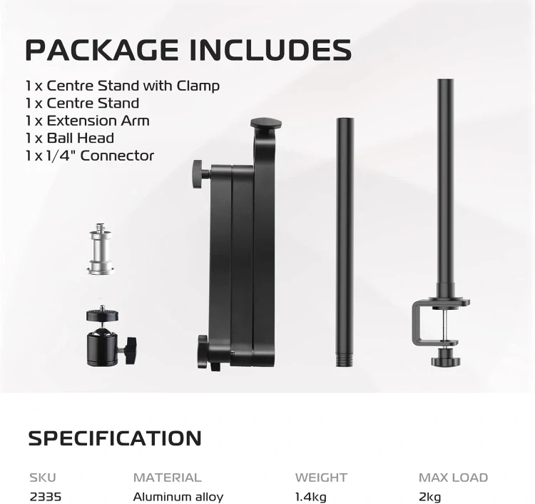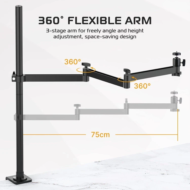 ULANZI Heavy-Duty Camera Desk Mount Stand with 3-Stage Flexible Arm, Desktop Overhead Stand with 360° Rotatable Ball Head, Aluminum YouTube Equipment for DSLR Webcam Online Teaching Meeting