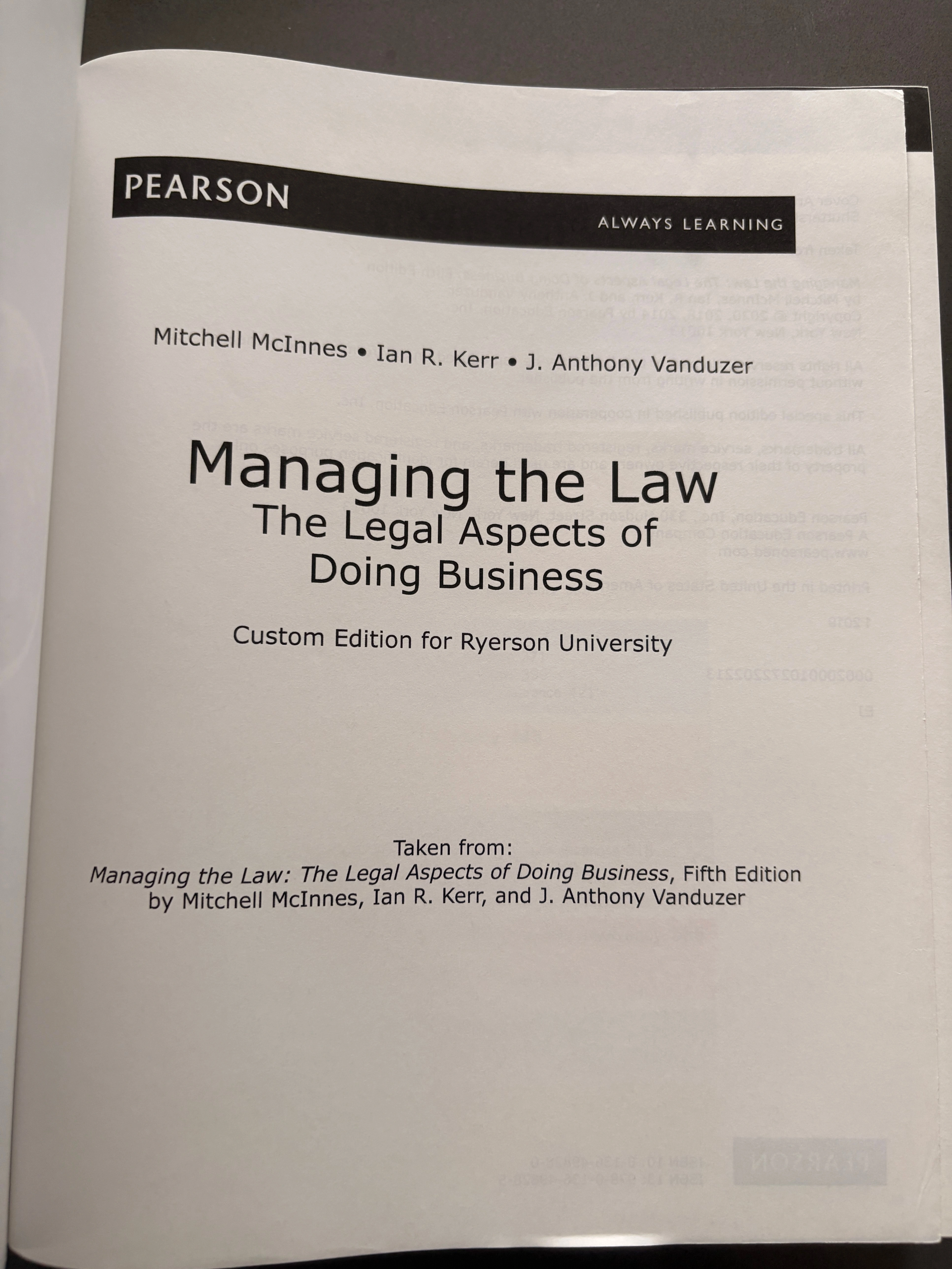 Managing the Law: The Legal Aspects of Doing Business (TMU)
