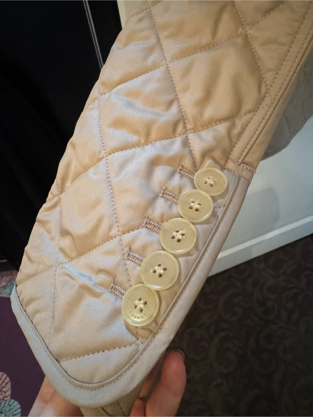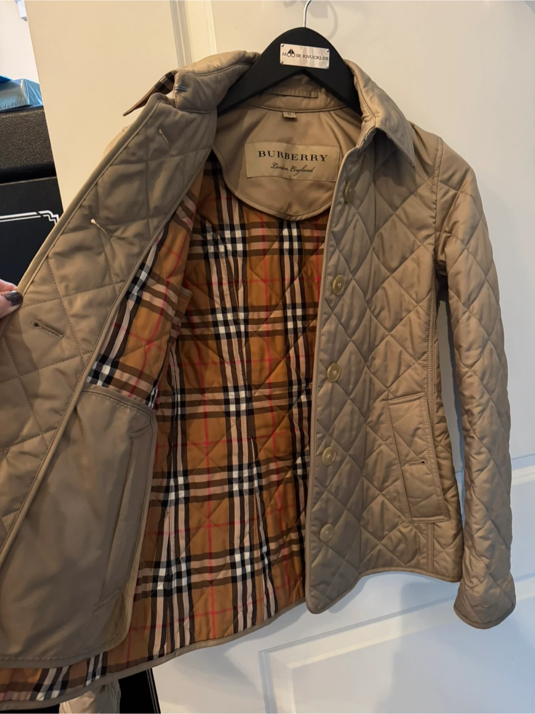 Selling a gently used Burberry quilted jacket in size XS. It's in great condition and features the classic Burberry check lining. Perfect for layering!