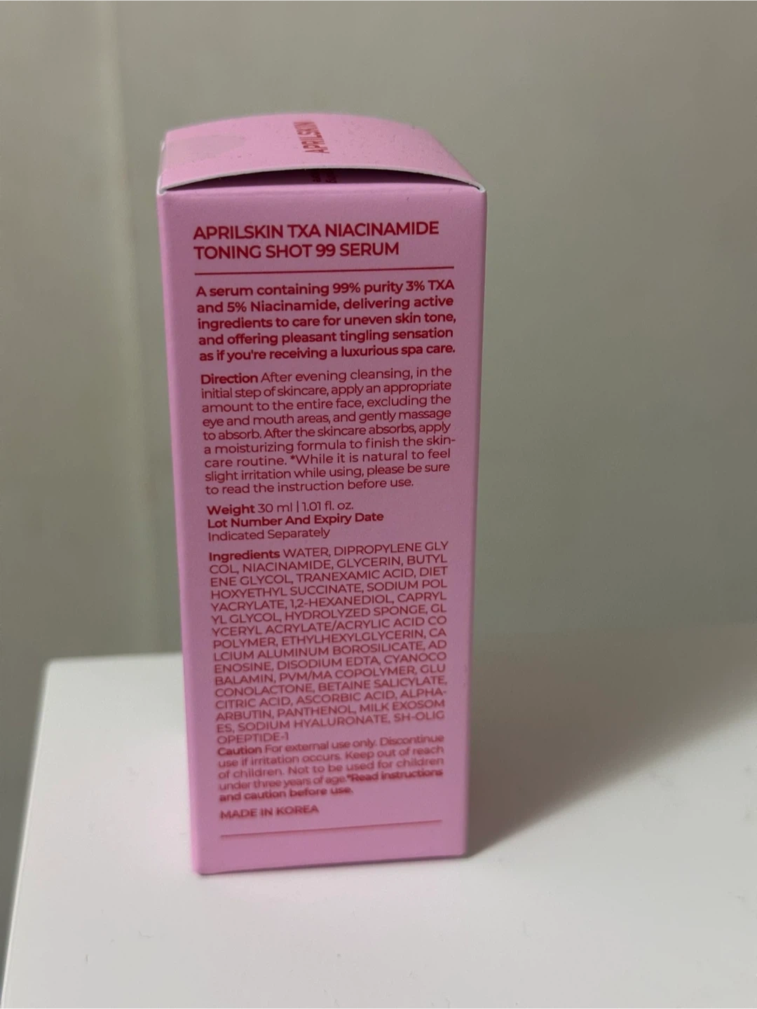 Selling an APRILSKIN TXA Niacinamide Toning Shot 99 Serum! This serum contains 99% purity TXA and 5% Niacinamide.