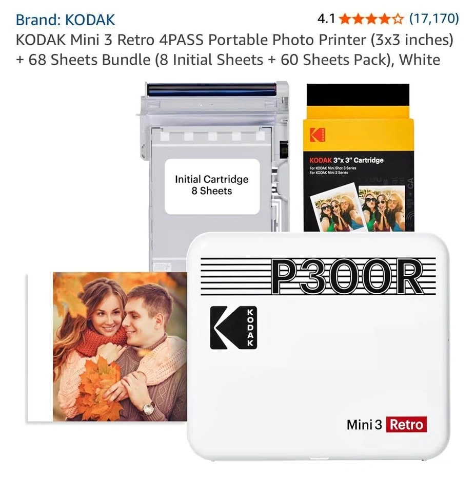 Brand new in box KODAK MINI 3 retro 4PASS portable photo printer + 68 sheets bundle.