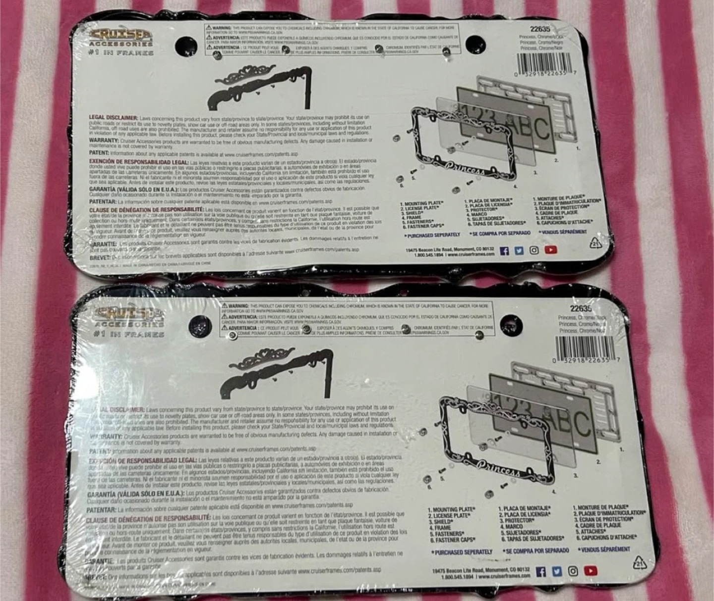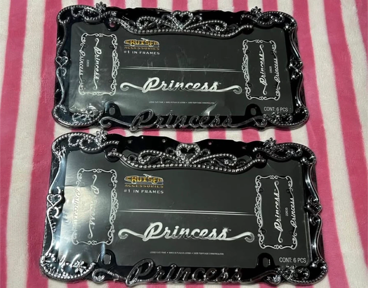 I have two new Princess chrome license plate frames for sale. They are Cruiser Accessories, #1 in frames. Each package contains 6 pieces.