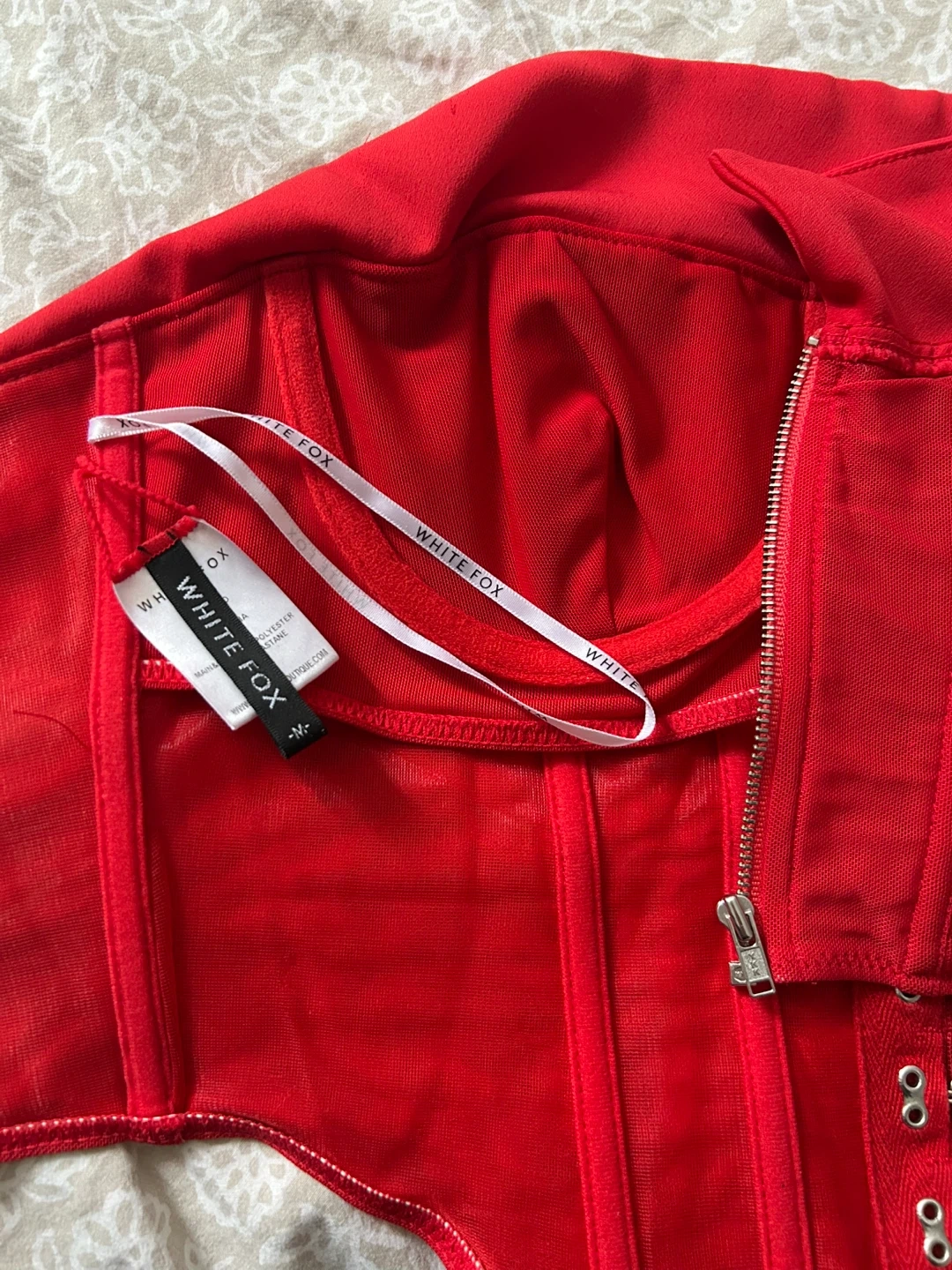 Selling a White Fox red corset top in size medium! It's in great condition and would look amazing for a night out or special occasion. The corset features a zipper and hook-and-eye closure at the back.