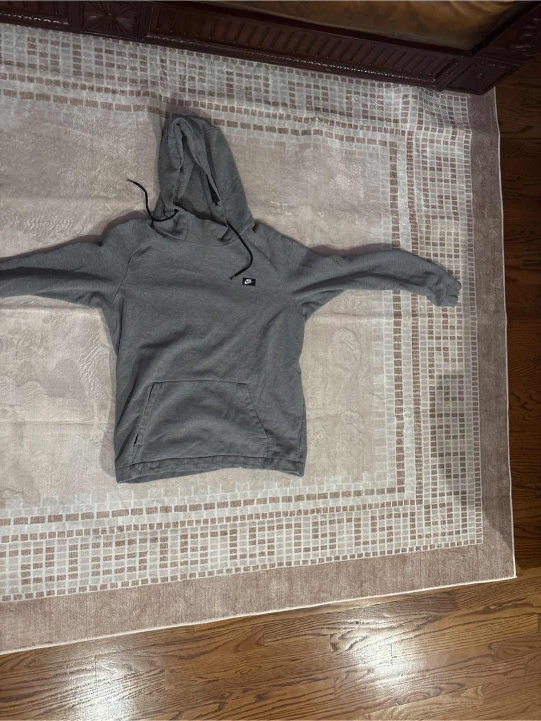 Selling a grey Nike hoodie. It's in great condition and ready for a new owner! Perfect for those cooler days or layering up. It's a classic and comfortable piece to add to your wardrobe