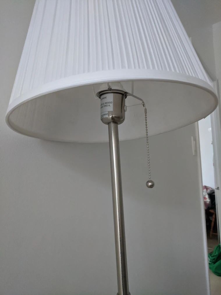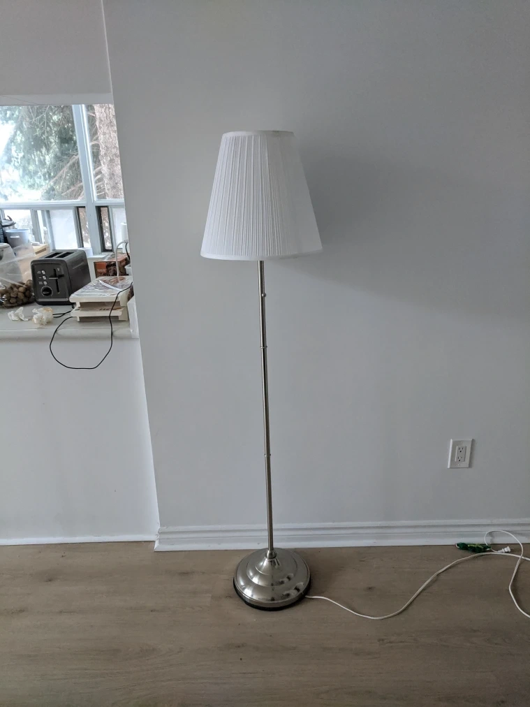 Selling a floor lamp from IKEA! It has a classic design with a white pleated shade and a silver-tone stand. It's in great condition and provides a nice ambient light for any room.