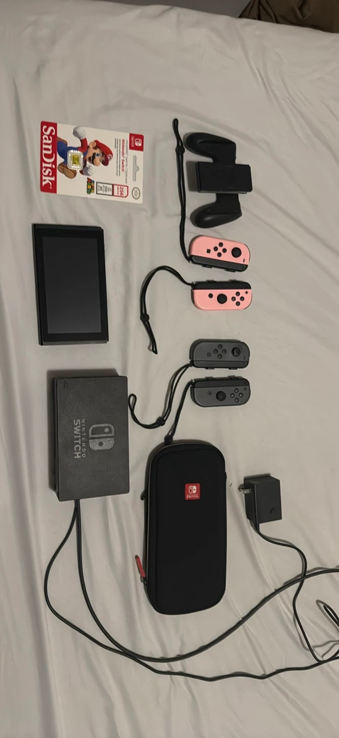 Selling a Nintendo Switch console with all the accessories you need for gaming on the go or at home! Includes the console, dock, Joy-Cons, and a carrying case. Also comes with a SanDisk 256GB memory card for extra storage!