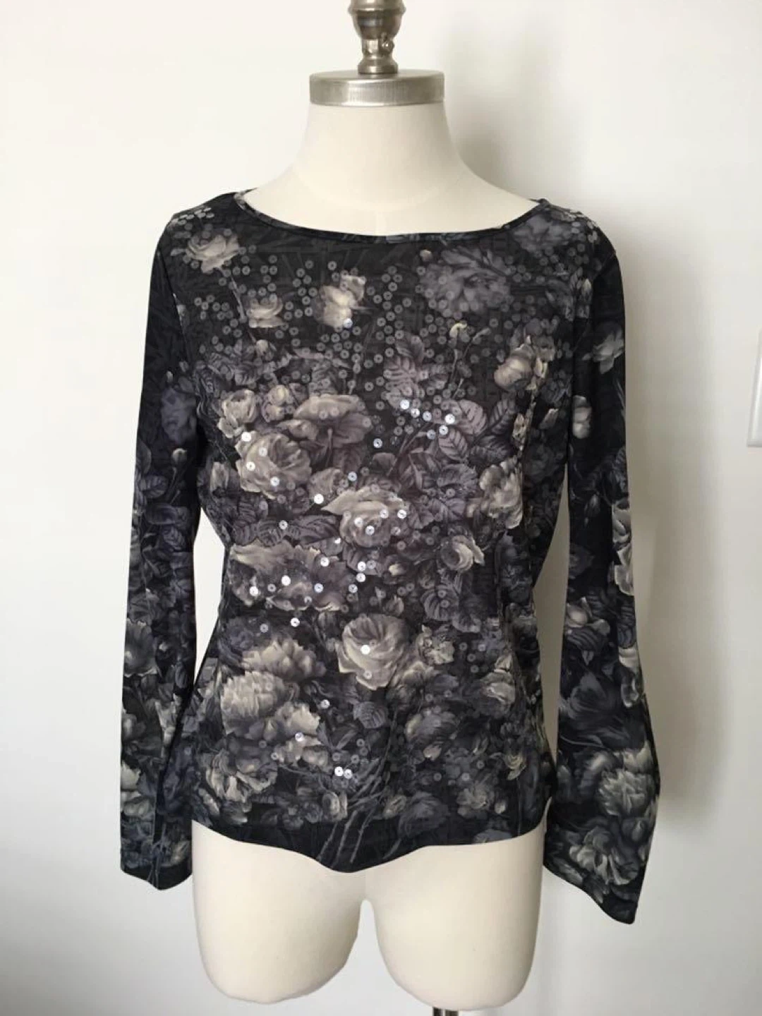 Selling a Jones New York sequins blouse in size medium. It features a beautiful floral pattern. Perfect for adding a touch of elegance to your wardrobe!