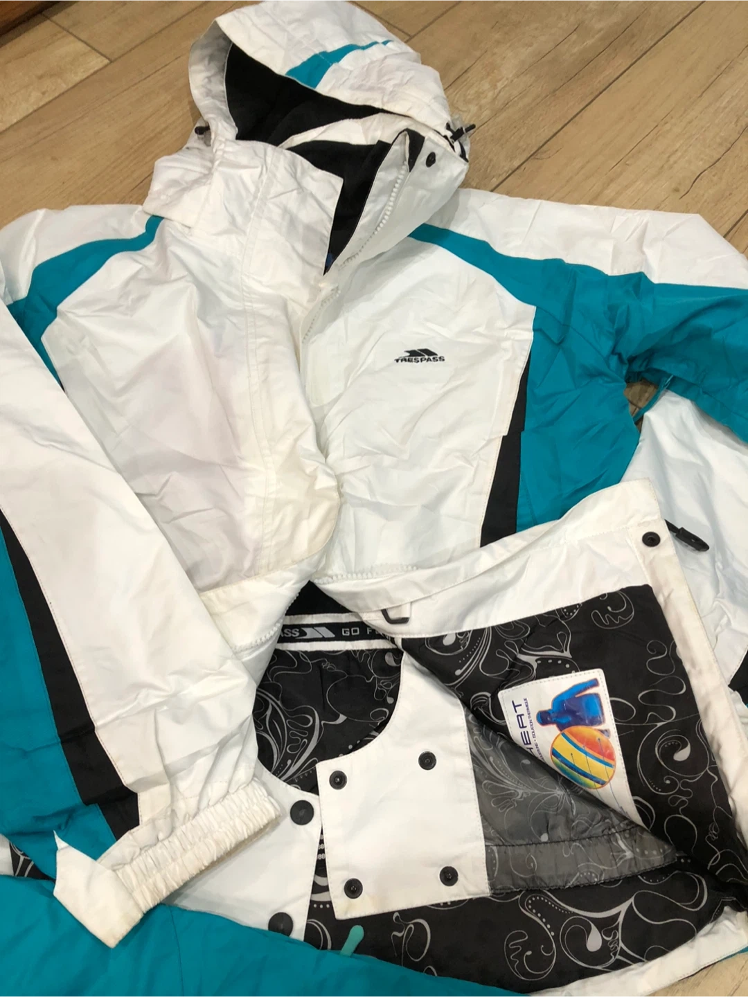 Selling a Trespass ski suit in great condition! The colours are white and teal. Perfect for hitting the slopes this winter season!