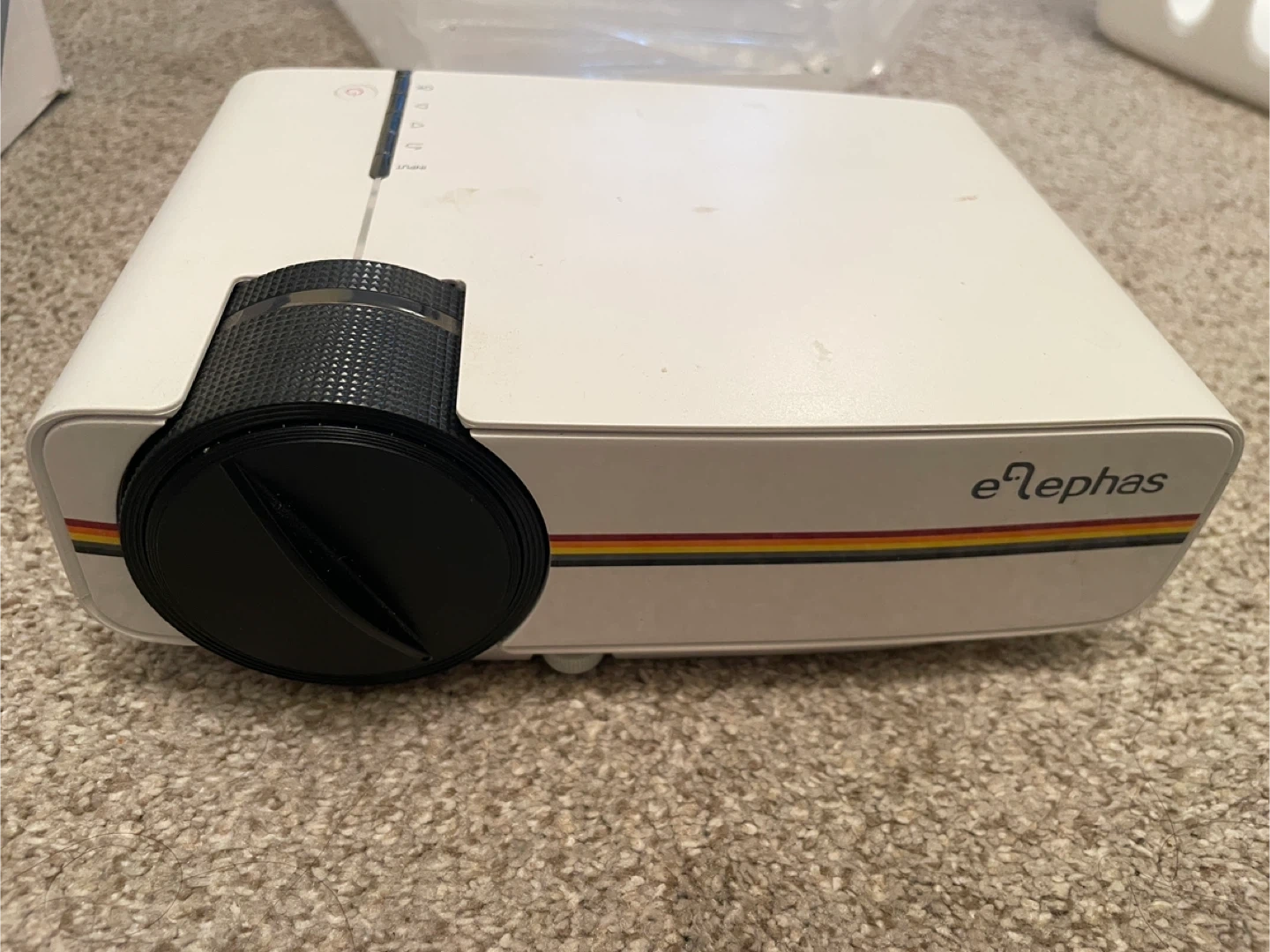 Selling an eLEPHAS LED Projector! It comes with the original box and all the accessories you see in the photos, including the remote, power cable, and AV cables. Perfect for movie nights or presentations