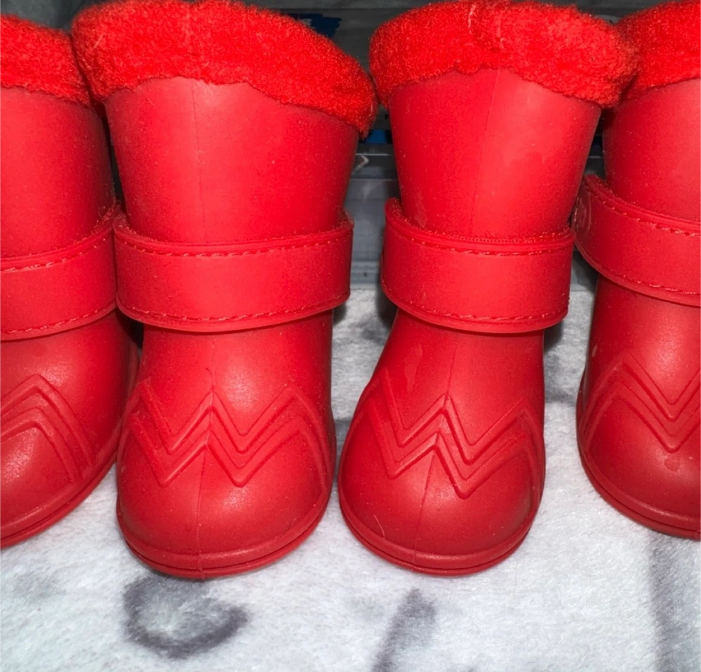 Keep your furry friend's paws protected with these Wellies fleece-lined dog boots! They're waterproof, flexible, and comfortable, perfect for snow, salt, rain, and mud. The easy-on design and secure strap make them a breeze to put on and take off. These are brand new and have never been worn.