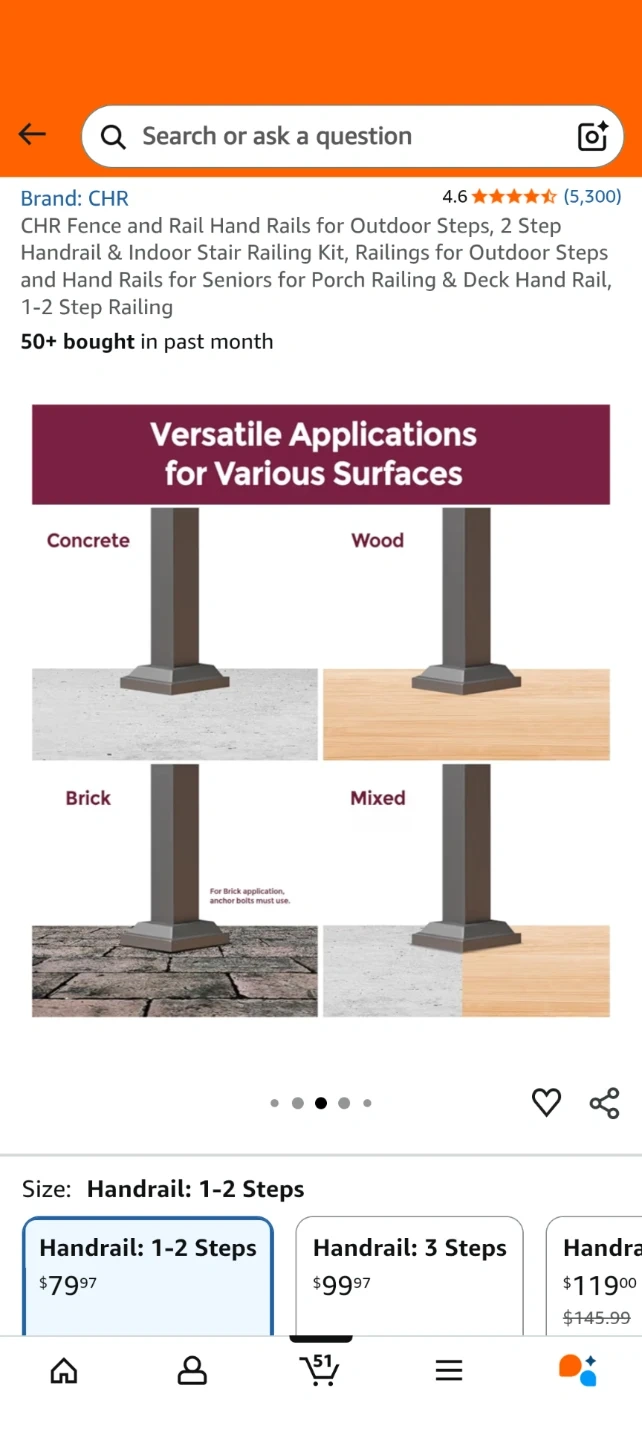 Selling a CHR fence and rail handrail kit. It's designed for outdoor steps and indoor stair railing. Perfect for seniors or anyone needing a bit of extra support on porch or deck steps. This kit is for 1-2 steps and is easy to install!