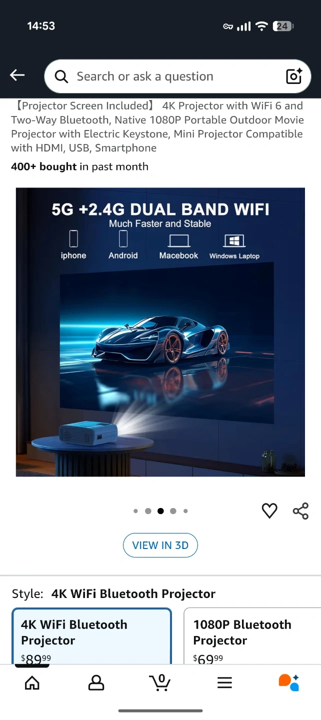 4K WiFi/Bluetooth Eokeiy Mini Projector with Remote