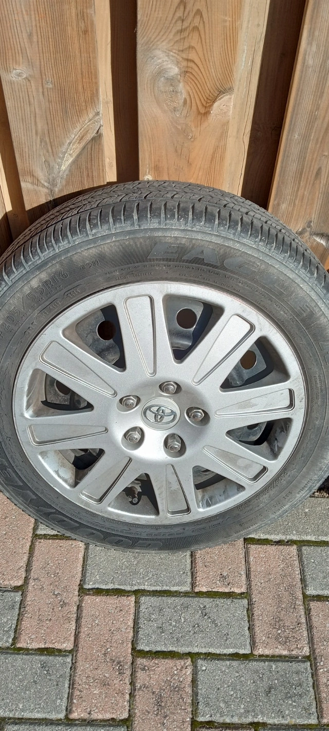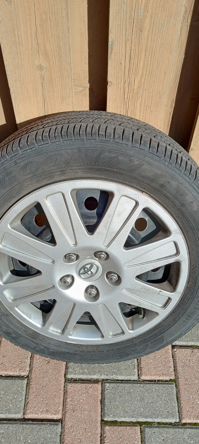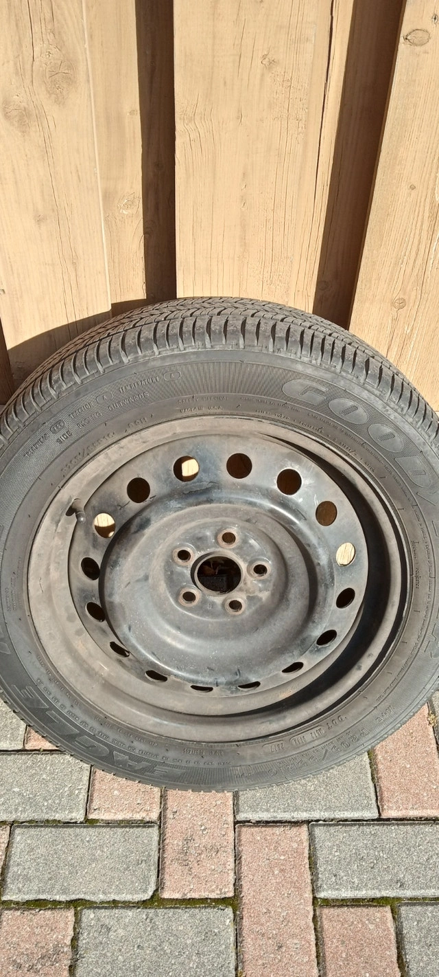 4 16" Goodyear Eagle RS-A P205/55R16 89H A/S tires with accompanying rims. Tires are good for another 1-2 seasons. The rims are in good condition with one cover missing.