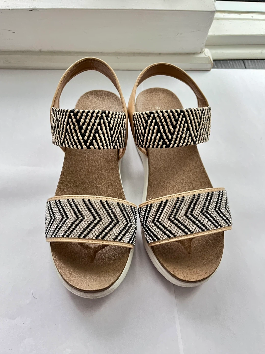 Stylish and comfortable summer sandals with beautiful bead detailing across the top.