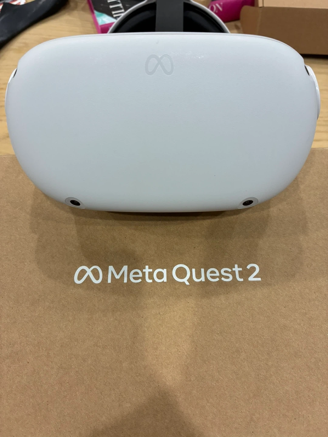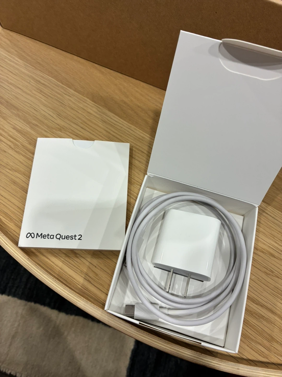 comes with the box and all included components. Headset + adjustable comfort strap bought separately all in 2022 *the charging plug is an apple plug because I can’t find the meta one.
