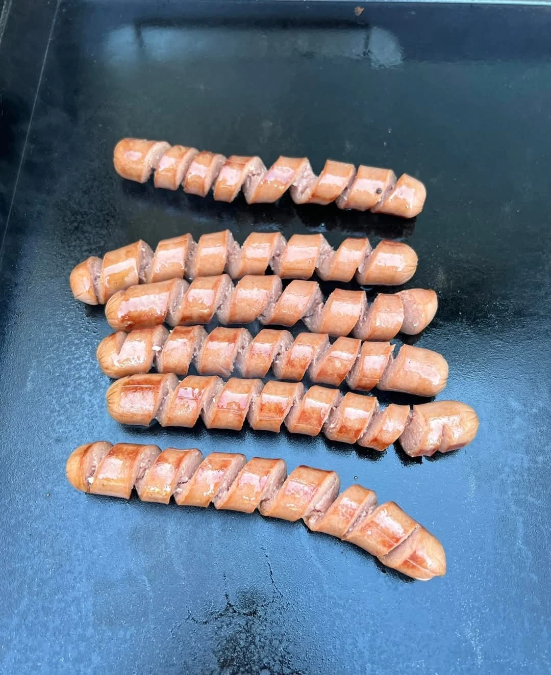 Excellent condition. Manual hot dog spiral slicer. Kitchen gadget designed to cut a spiral pattern into a hot dog or sausage before grilling or cooking. Creates a spiral cut that allows for even cooking and better absorption of sauces and seasonings. Hotdogs not included. Cross-posted.