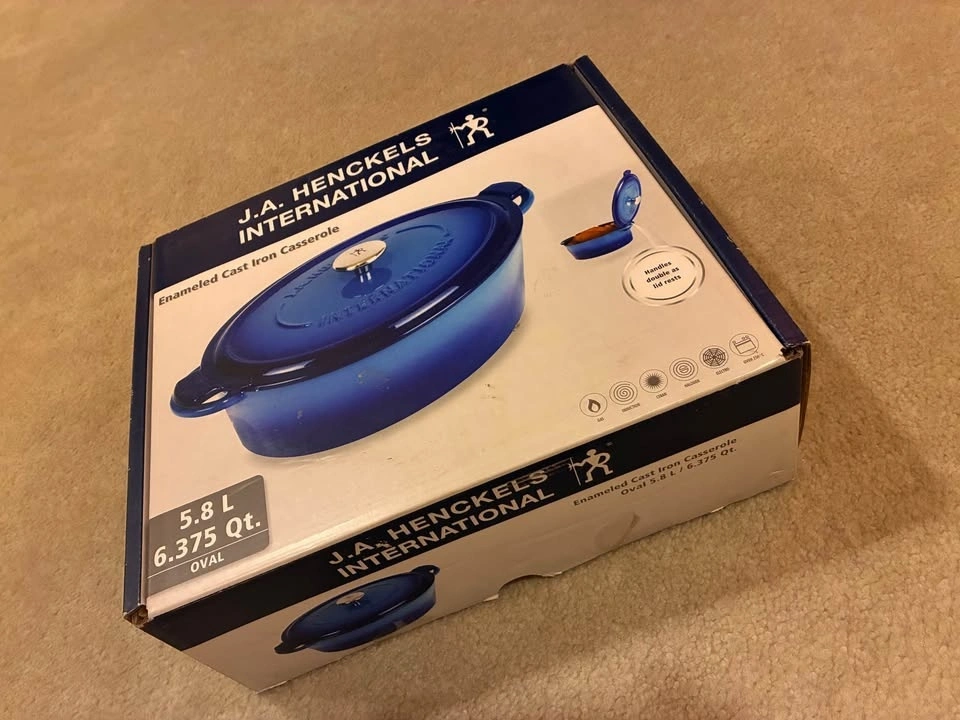 J.A. Henckels Blue Oval Cast Iron Casserole with Lid, 6.375 Quart (5.8 Litre)