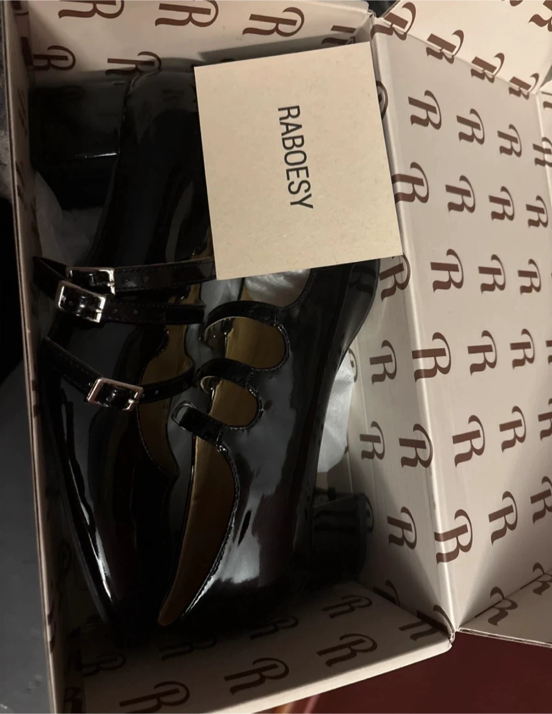 Selling a pair of Raboesy Mary Jane heels in black patent leather. They are a size 40 and come with the original box. These stylish heels are perfect for adding a touch of elegance to any outfit! Original price $68.00
