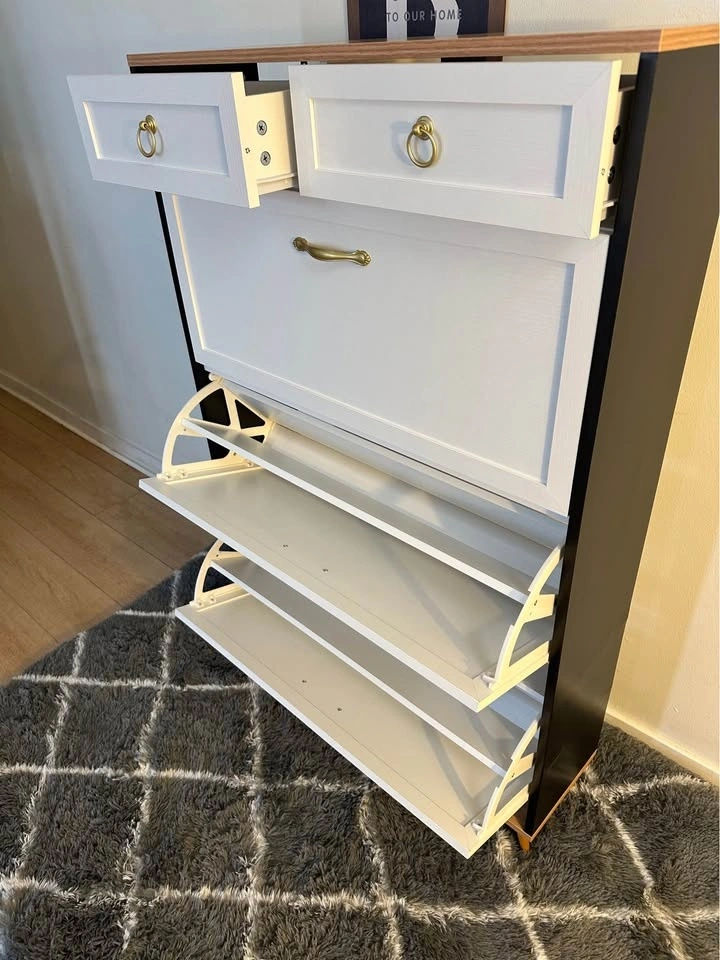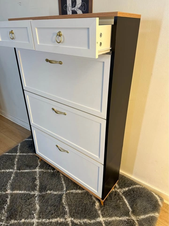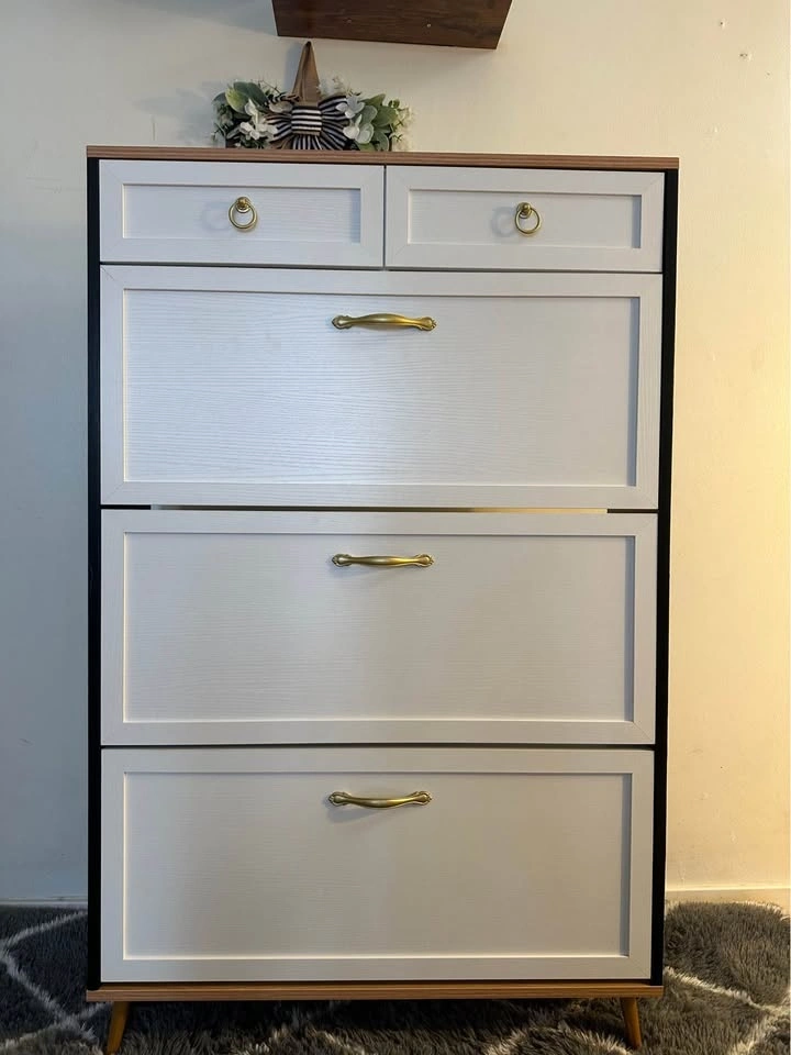 Narrow shoe organizer cabinet with 3 large drawers and 2 storage drawers, thin shoe storage for entrance, hallway, bedroom/ Slight detail inbox for more Information