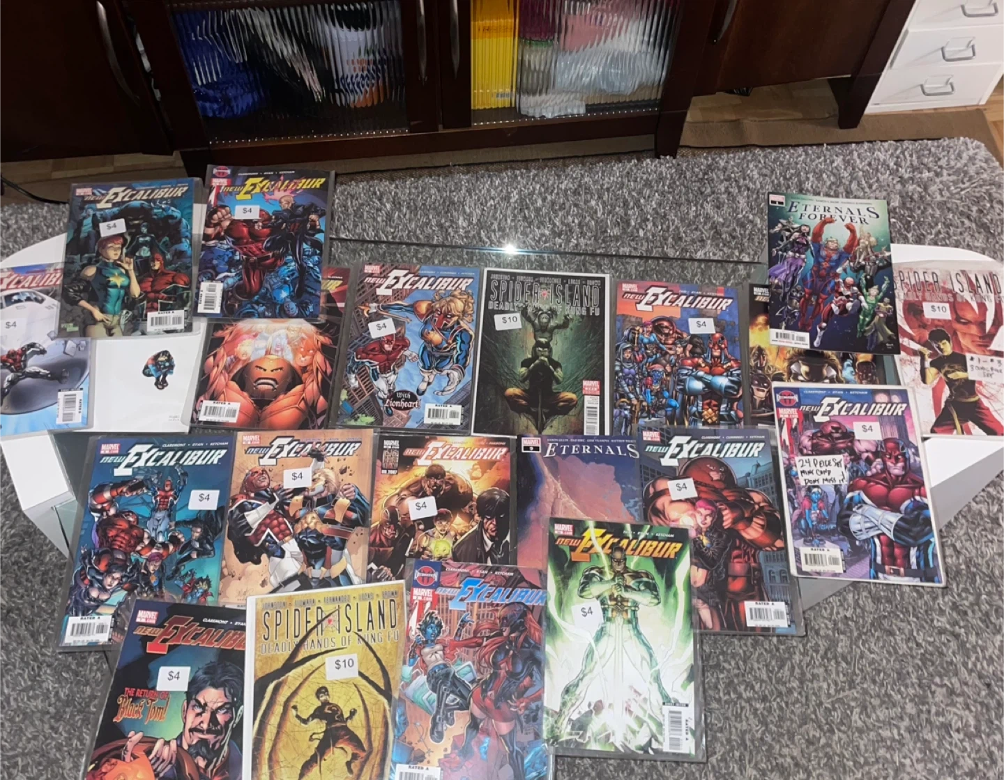 Selling a lot of Marvel comics! Includes titles like Excalibur, Eternals, and Spider Island. Great for collectors or anyone looking to dive into the Marvel universe