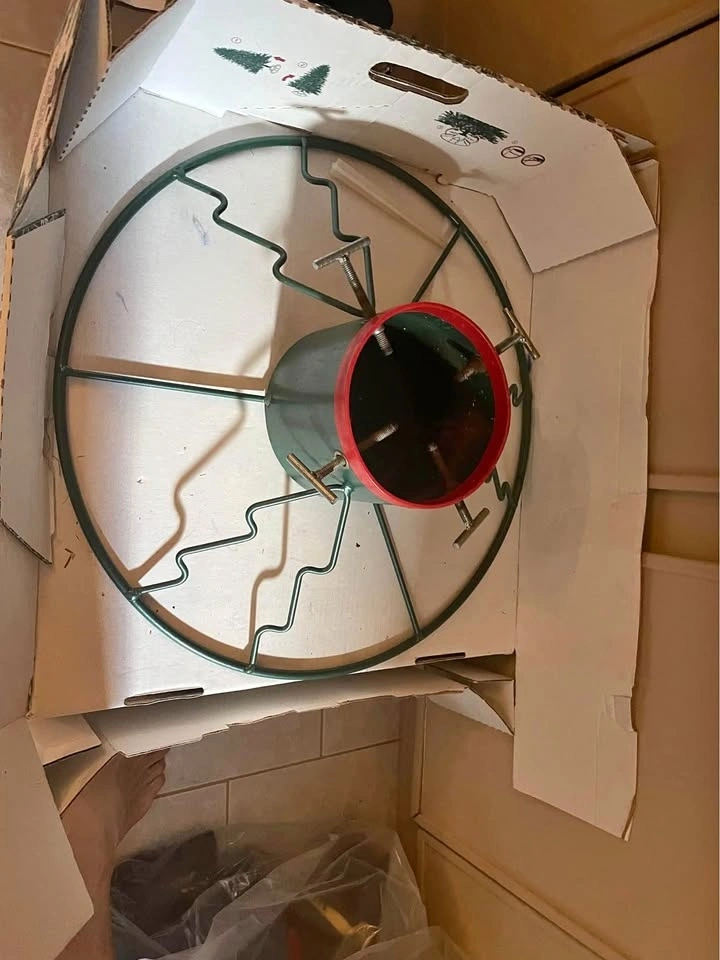 Santa’s Last Stand metal Christmas tree stand. I have had this for years. Super sturdy for real Christmas trees. Always holds them up. Easy to use.