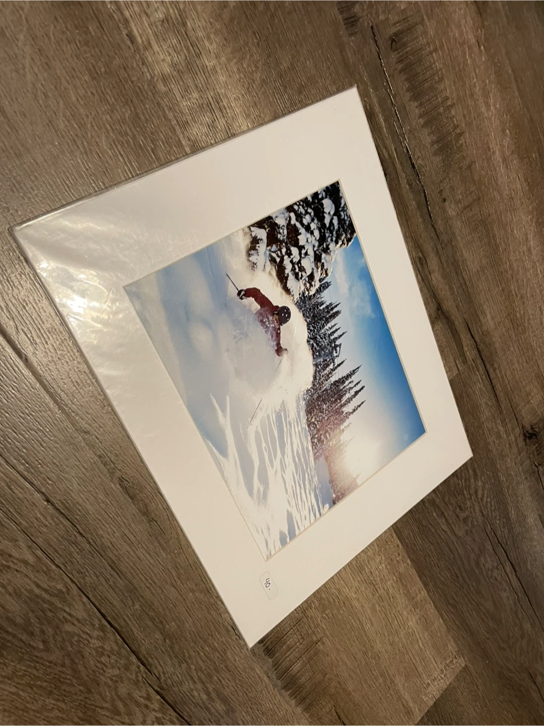 Selling a framed photo print of a skier in action! It's in great condition and ready to be displayed in your home or office. The print is professionally framed and matted, giving it a polished and sophisticated look. Perfect for ski enthusiasts or anyone who appreciates stunning winter landscapes. Print 8x10 Frame 11x14. Thanks for considering buying local. Check my other prints.