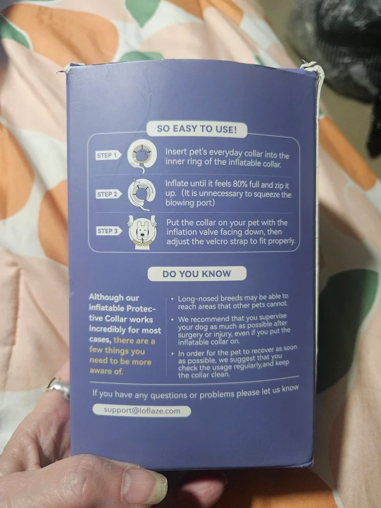 Selling a Loflazo Lazy Cone Inflatable Protective Collar in size XL! It's designed for comfort and support for injuries, rashes, and post-surgery recovery. It inflates in just 3 seconds and deflates in 1 second. The collar features an invisible zipper, inner ring loops, and a velcro strap for a secure fit. It also has a double-covered inflation valve