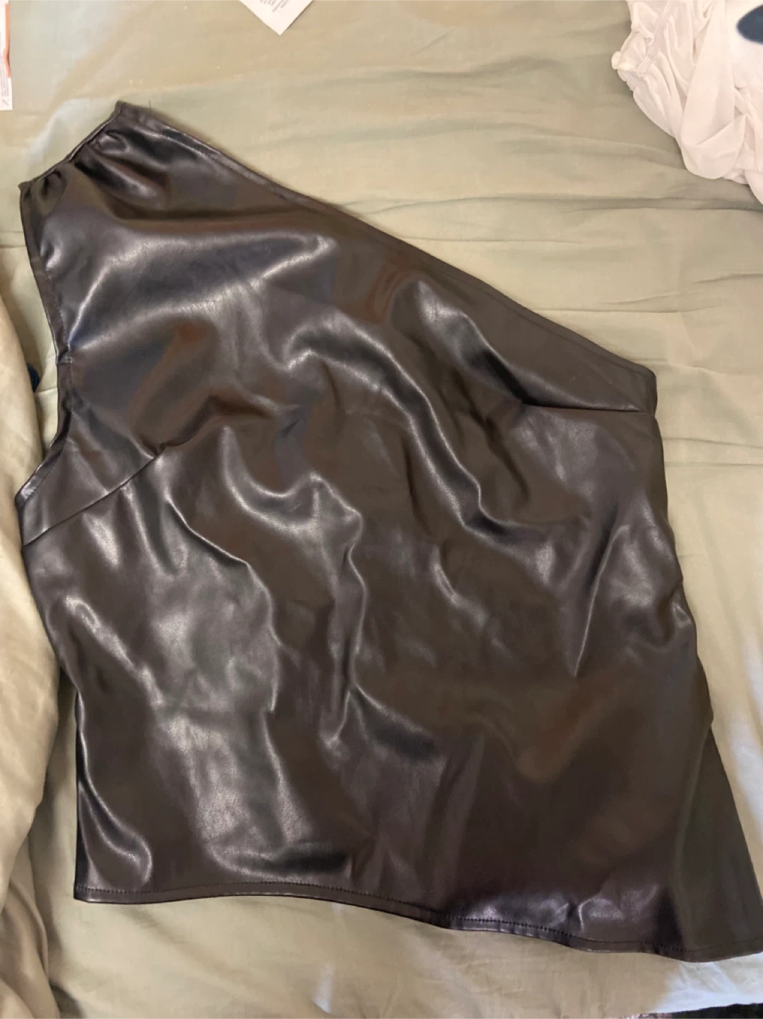 Selling a stylish black one-shoulder top! It's in great condition and would be a fun addition to your wardrobe. Feel free to reach out if you have any questions!