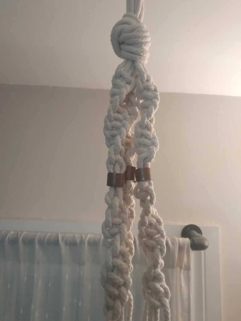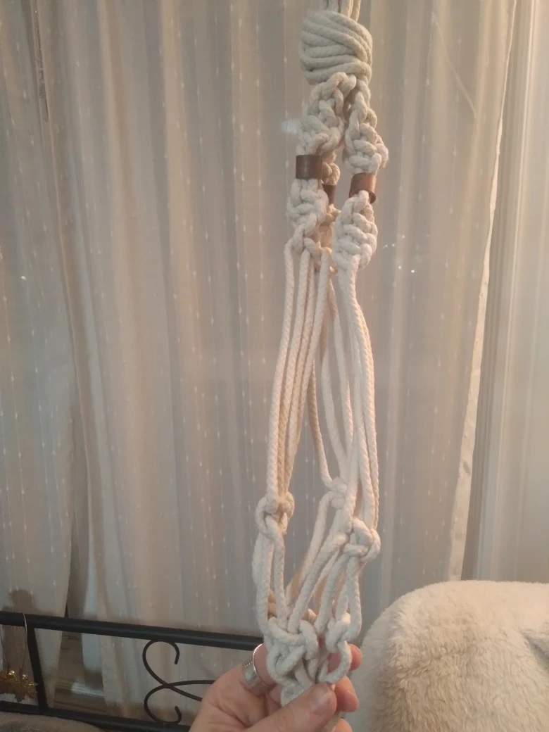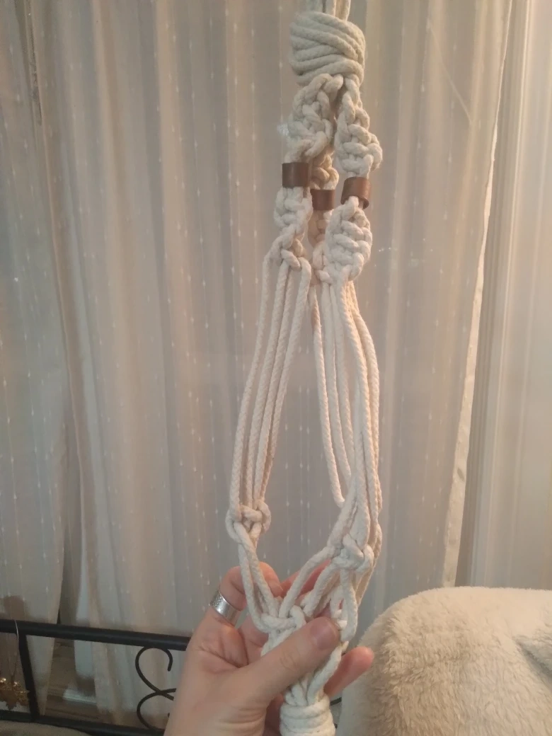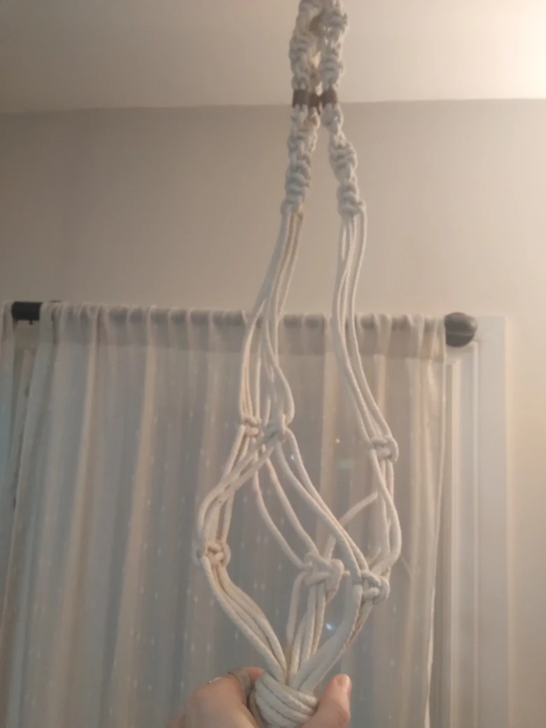 Add a touch of boho charm to your space with this macrame plant hanger! Perfect for displaying your favourite plants indoors or outdoors. It's in great condition and ready to brighten up your home.