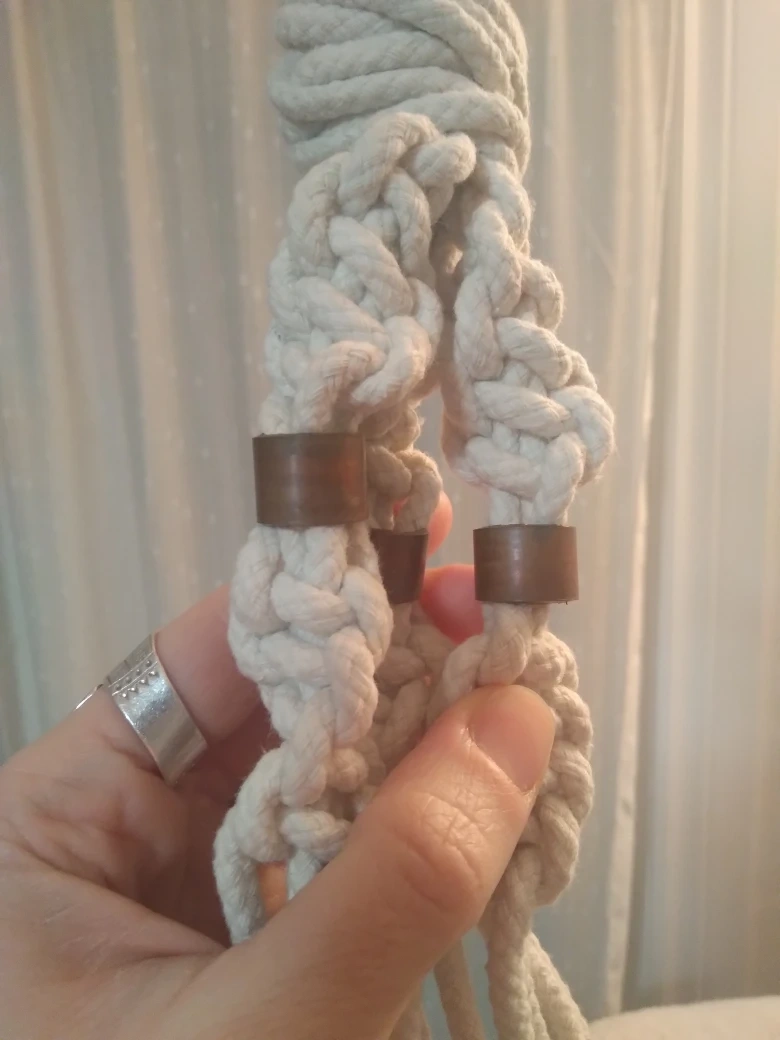 It has x2 openings for one larger pot and one smaller with a secure knot to take extreme weight. I had an overhanging plant in the larger spot which was quite a substantial weight and had no worries whatsoever.