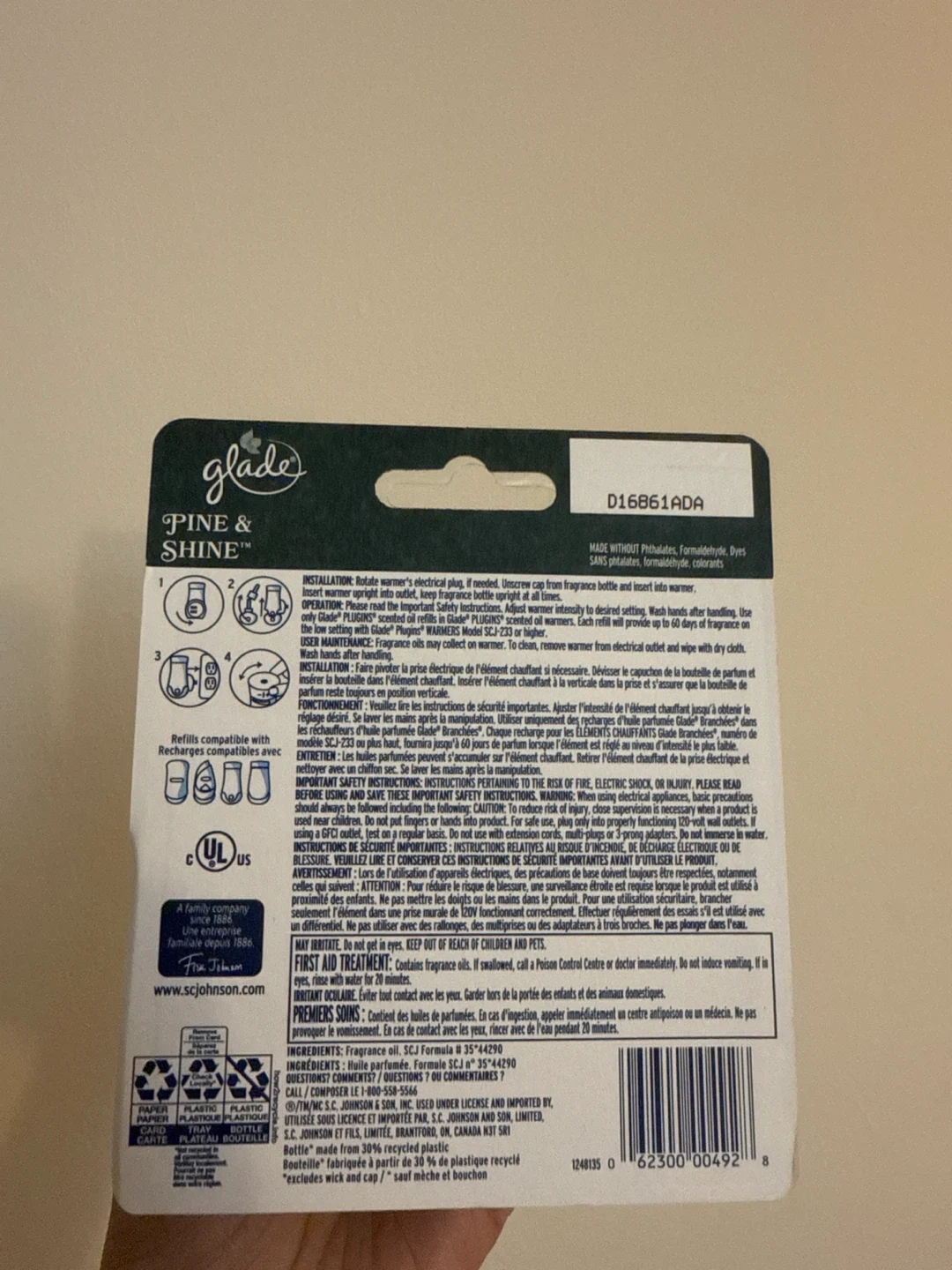 Selling a brand new Glade Pine & Shine PlugIns Scented Oil Warmer! This limited edition scent is perfect for the holidays. Refills are compatible with other Glade PlugIns scented oil warmers. Enjoy up to 60 days of fragrance per refill