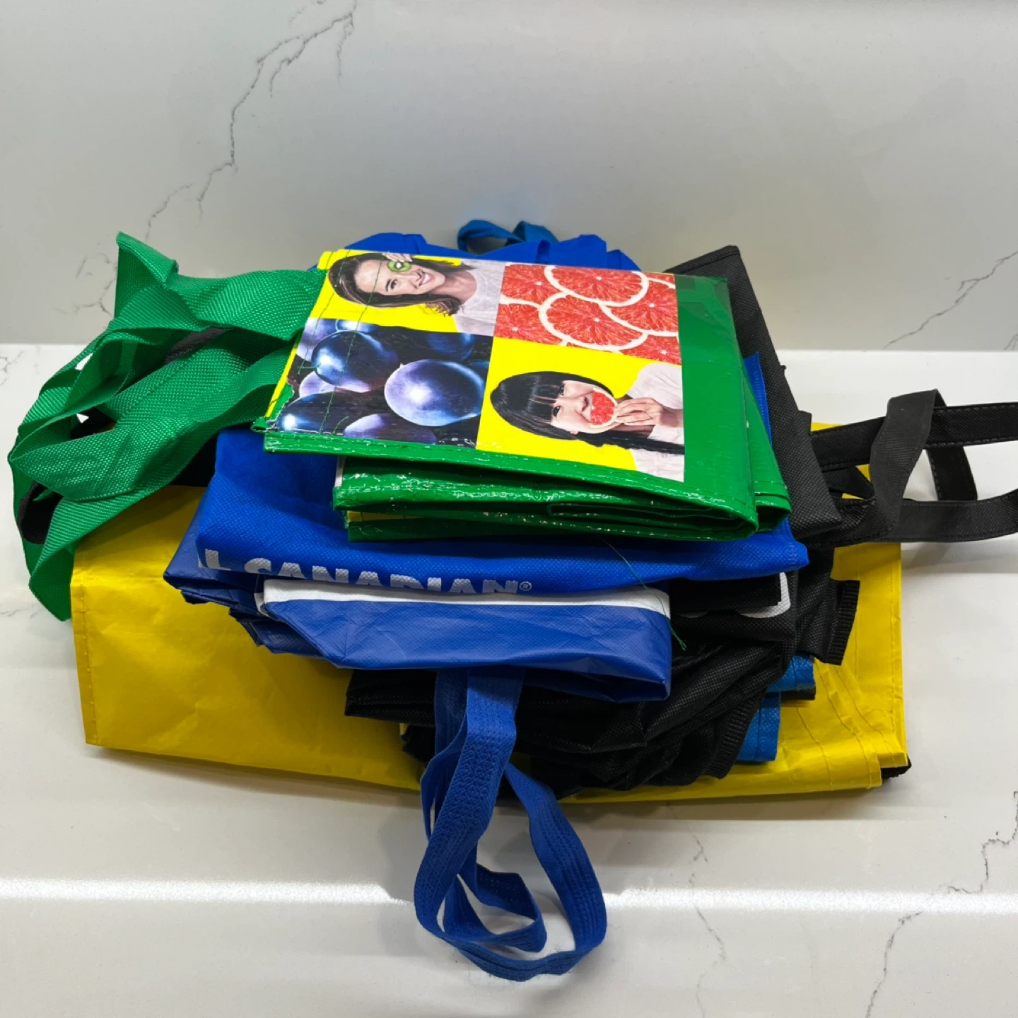 Giving away an assortment of reusable grocery bags. Great for shopping trips, moving lose items, gifting things to people in, and to reduce plastic use! Keep some in your car or handbag at all times, or offer to that person you know who still buys their bags at the store…