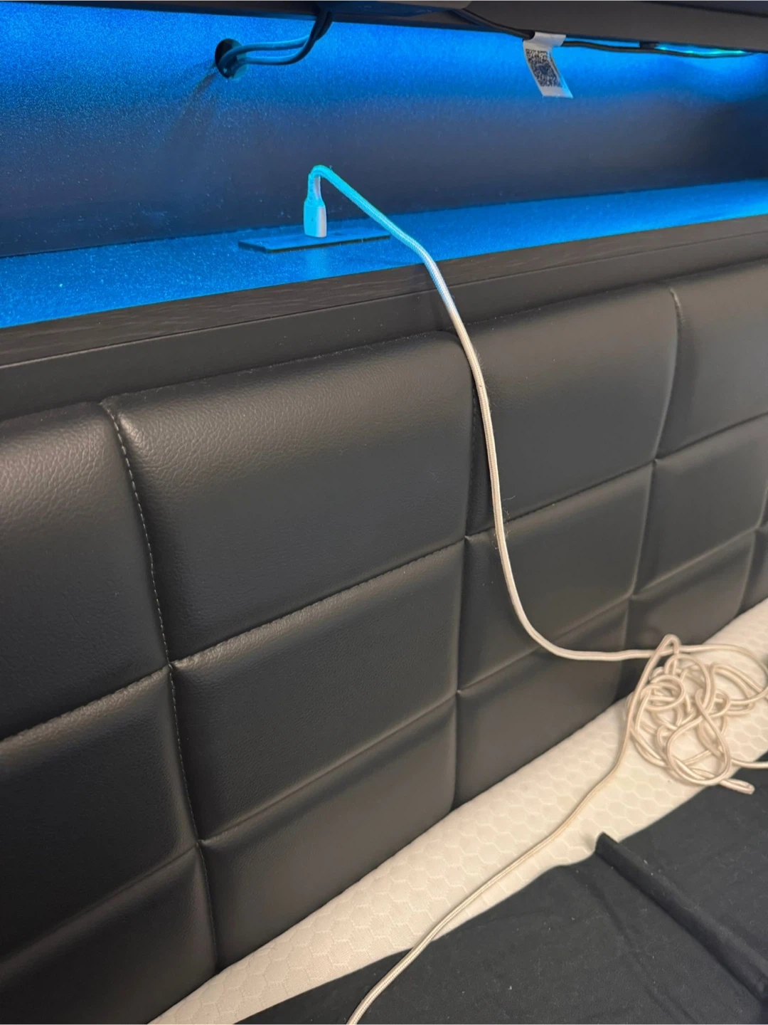 One year used#. Selling a bed frame in great condition! It features a sleek black finish and an integrated headboard with built-in LED lighting. The bed frame also includes shelving and drawers for extra storage. Perfect for adding a modern touch to your bedroom!