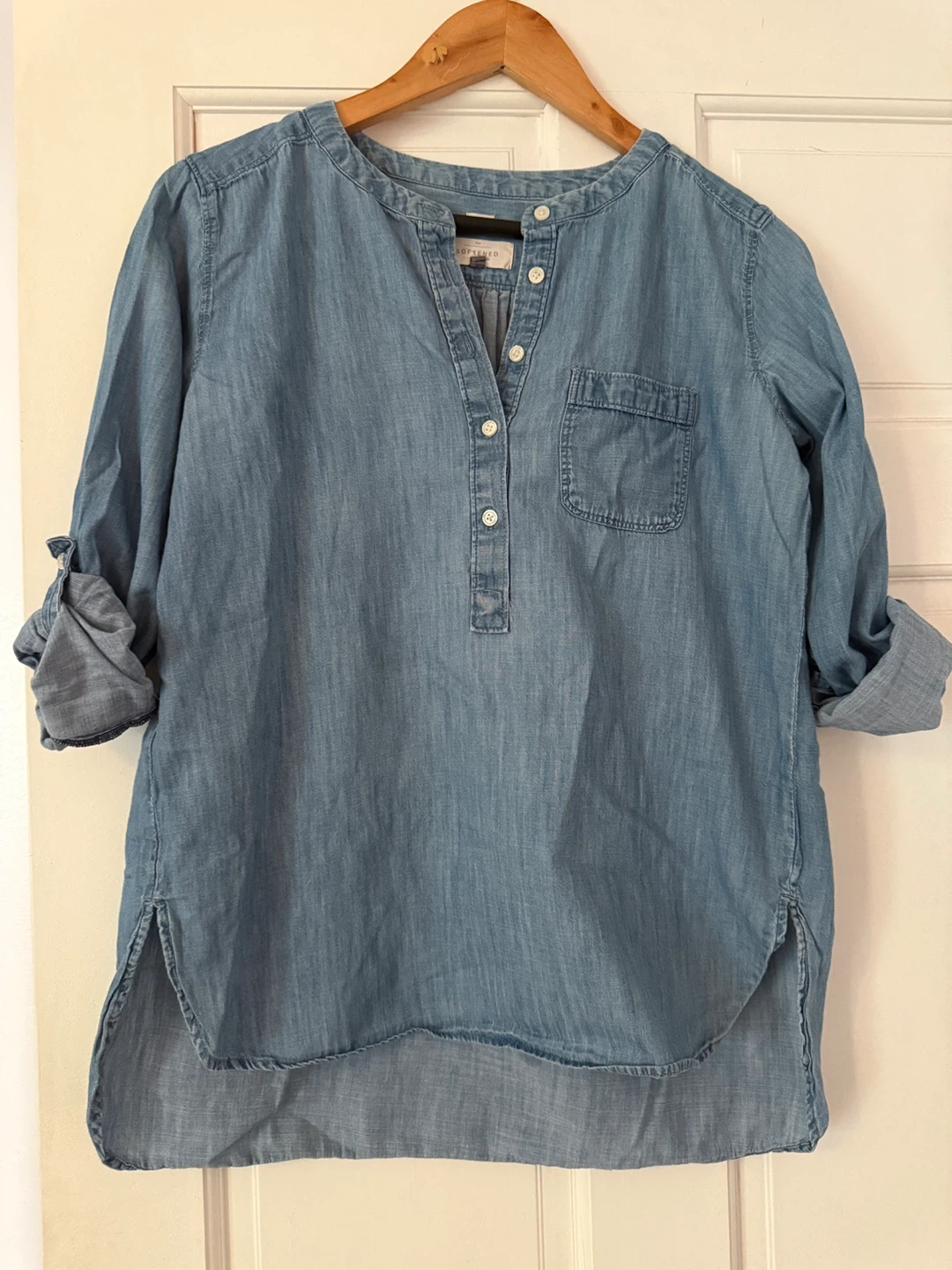 Selling a LOFT "The Softened" denim shirt! It's a light blue denim color and made of a soft material. Perfect for a casual look!
